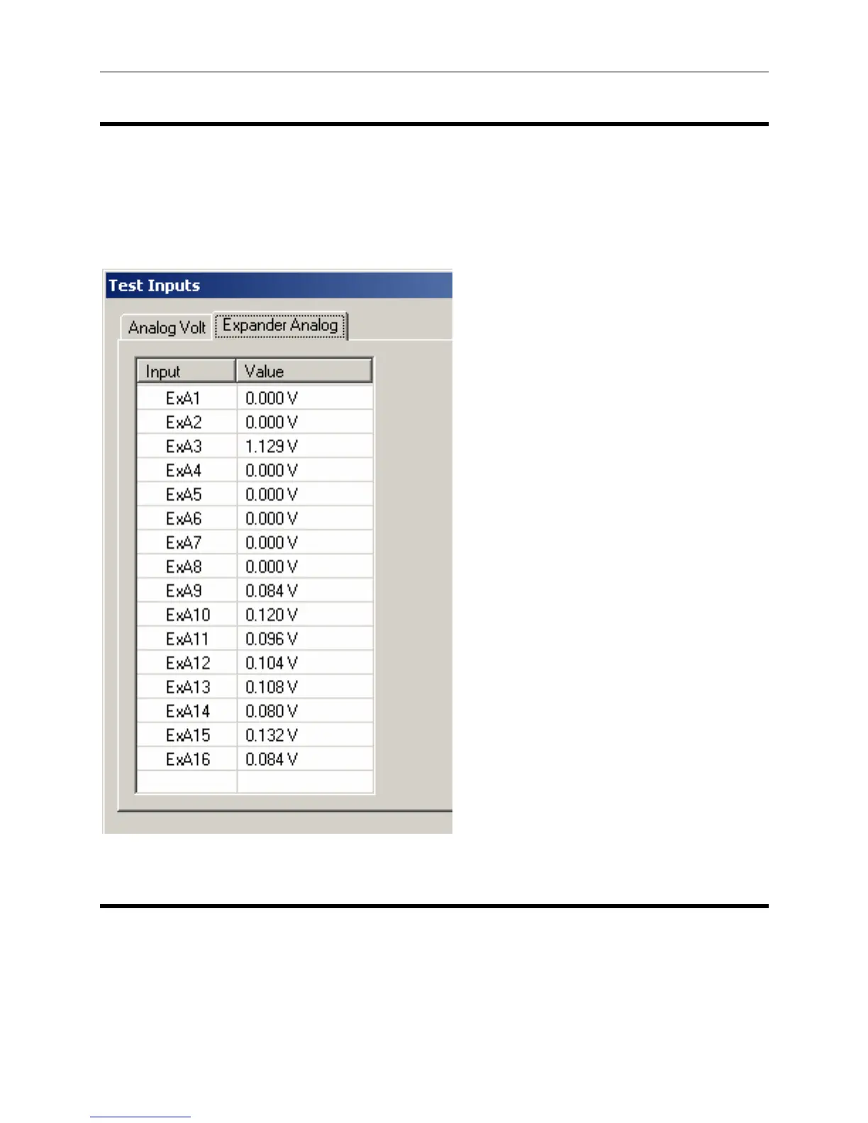 It is possible to view the current ‘live’ voltages on the expander’s analogue