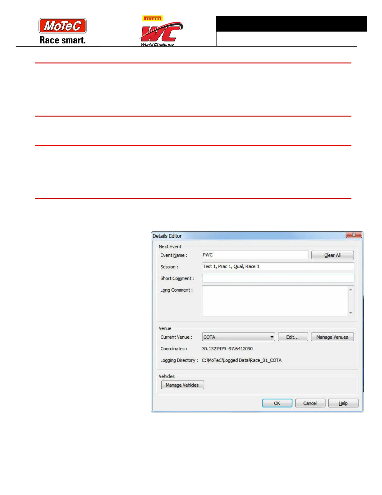 All MoTeC logger serial numbers must be on file with PWC. This includes any spare units.