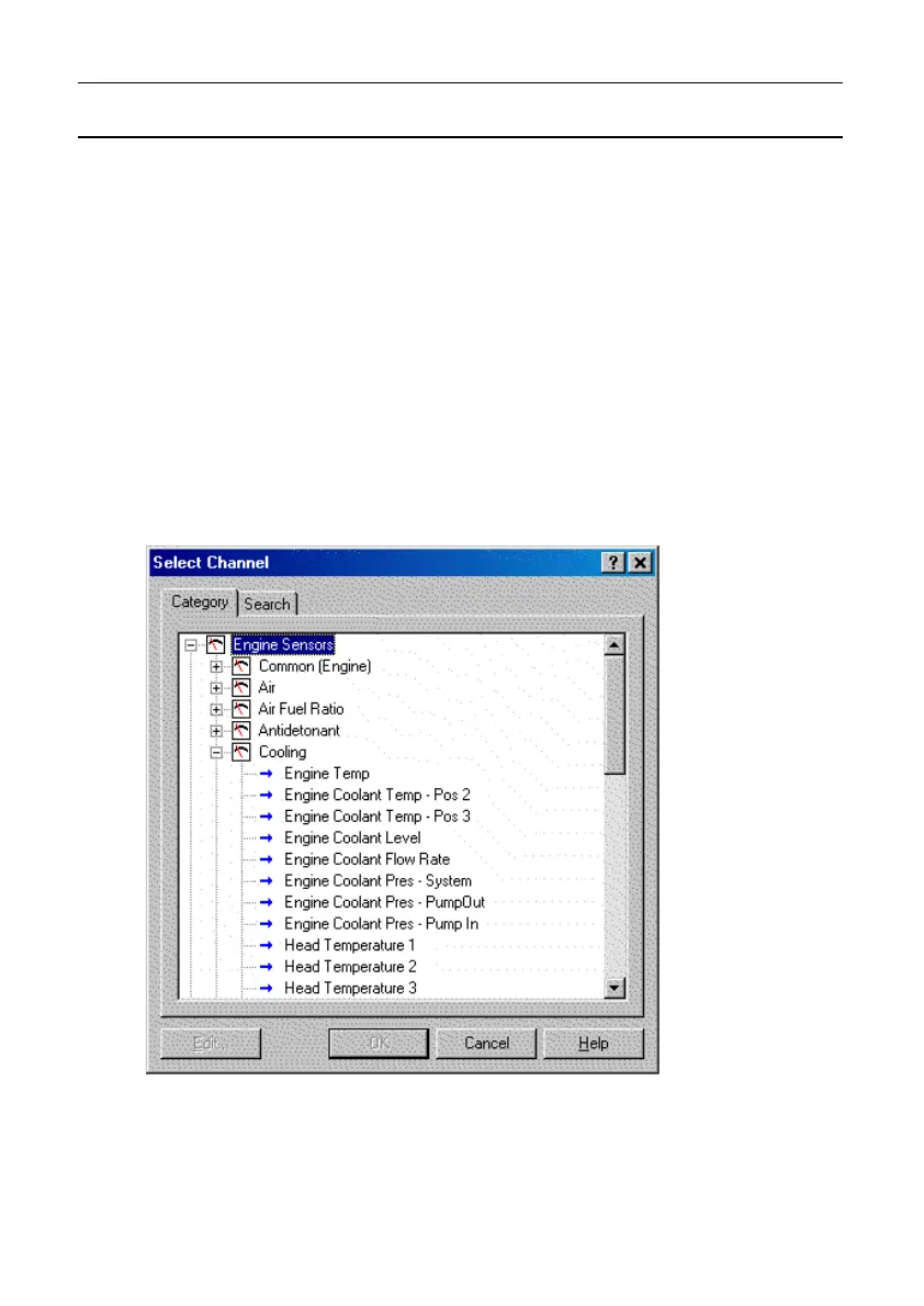 the ‘Engine Sensors / Cooling’ category shows a list of channels associated