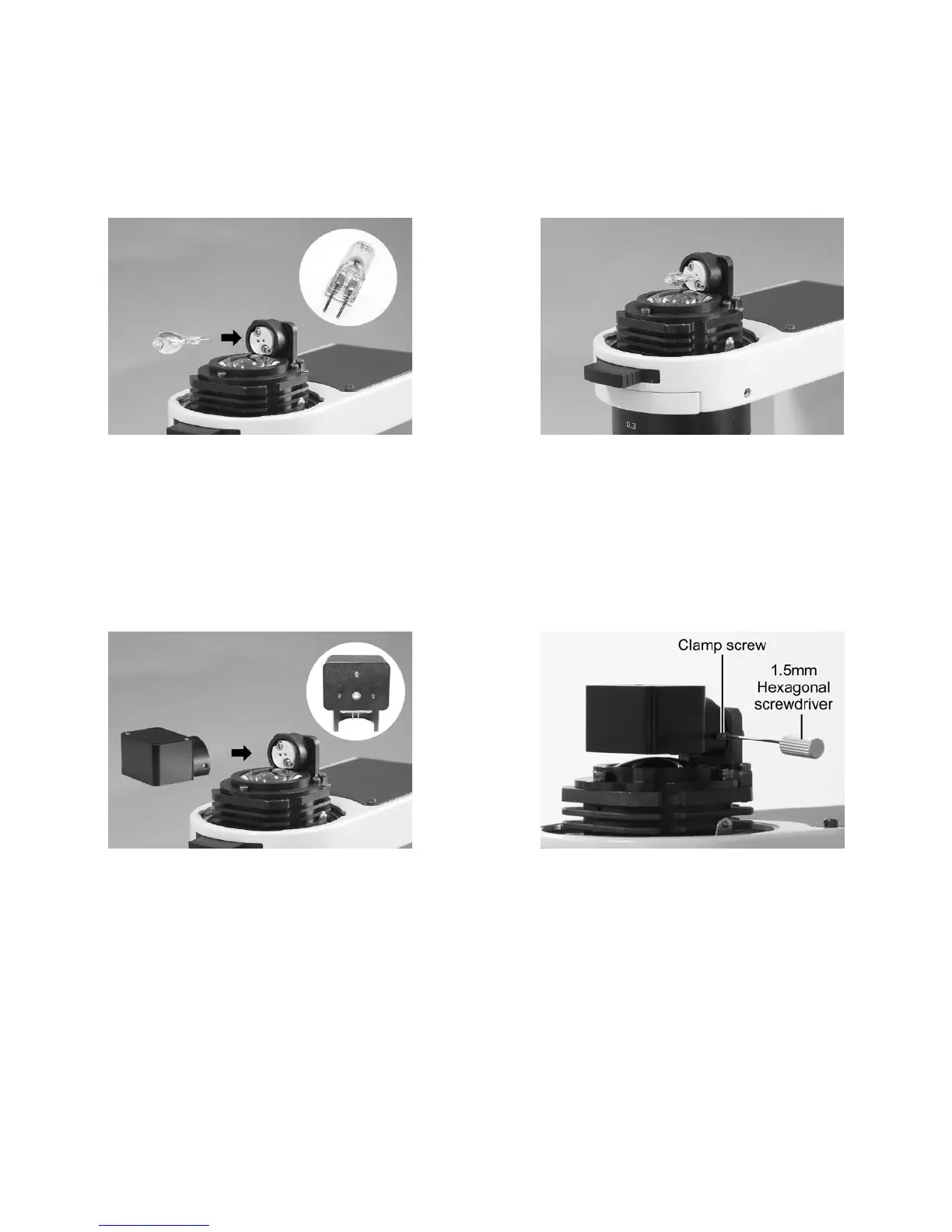 y Return lamphouse cover to original position and rotate clockwise to lock into place. The white paint
