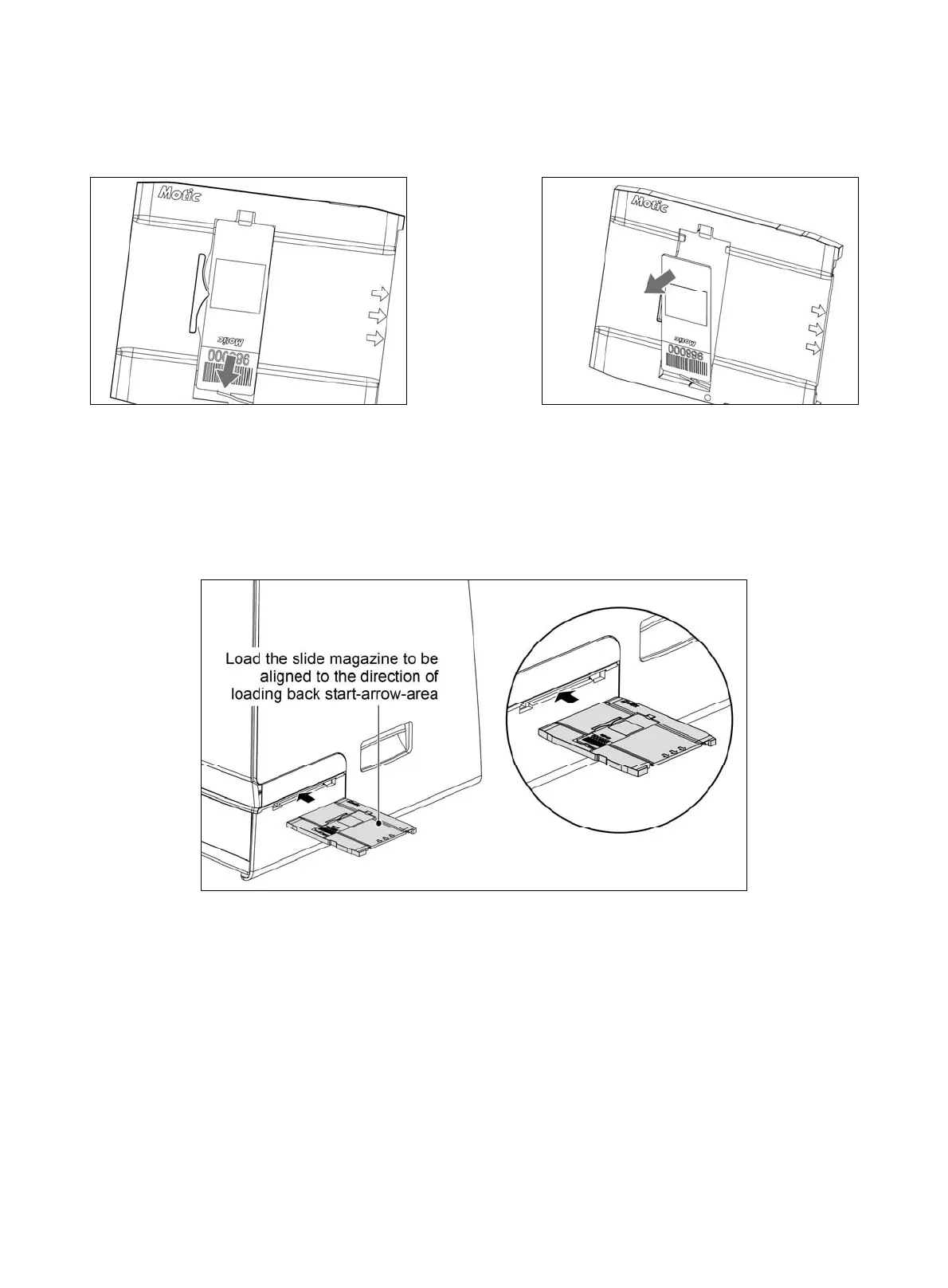 1. Load the slide tray into slide tray positioning slot slightly with the direction (make sure the arrow on