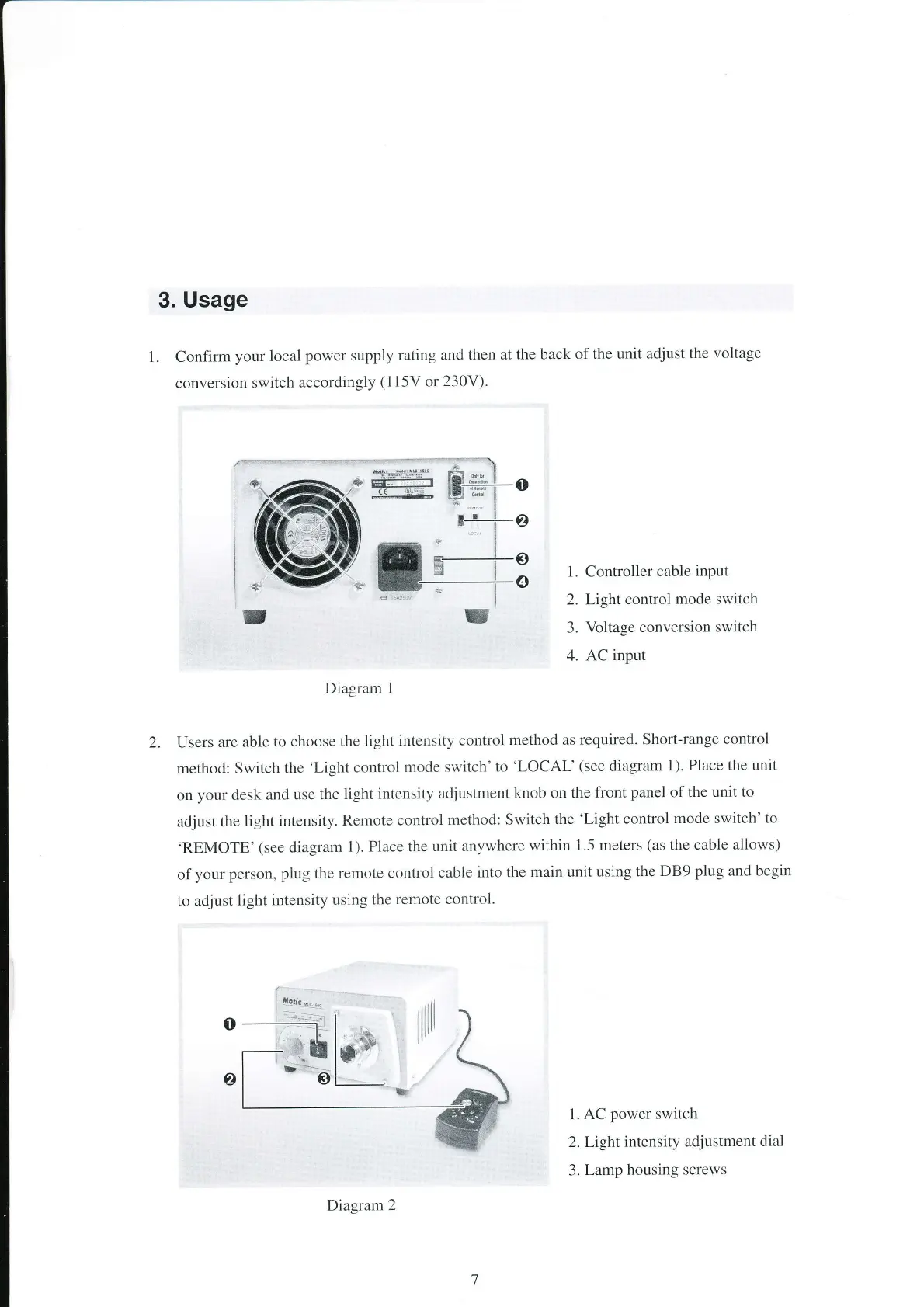 Motic MLC-150C - Usage