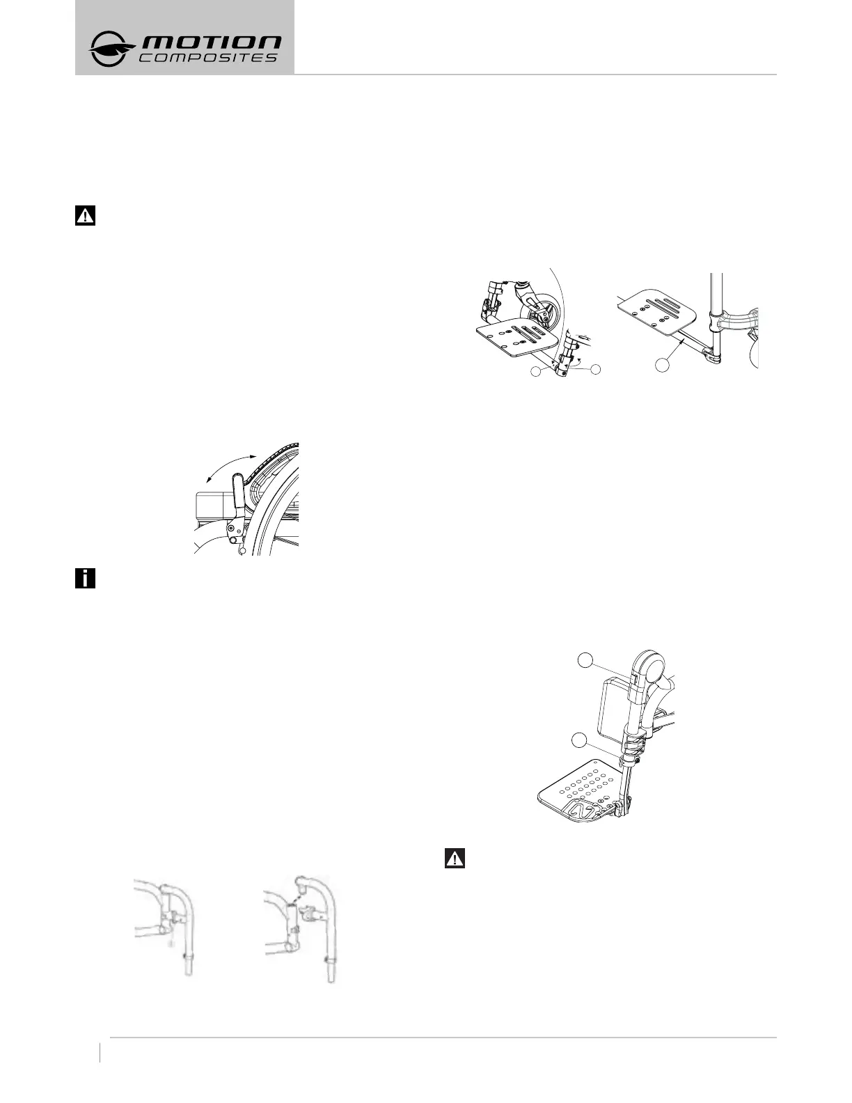 – Install the elevating legrest the same way to install a footplate,