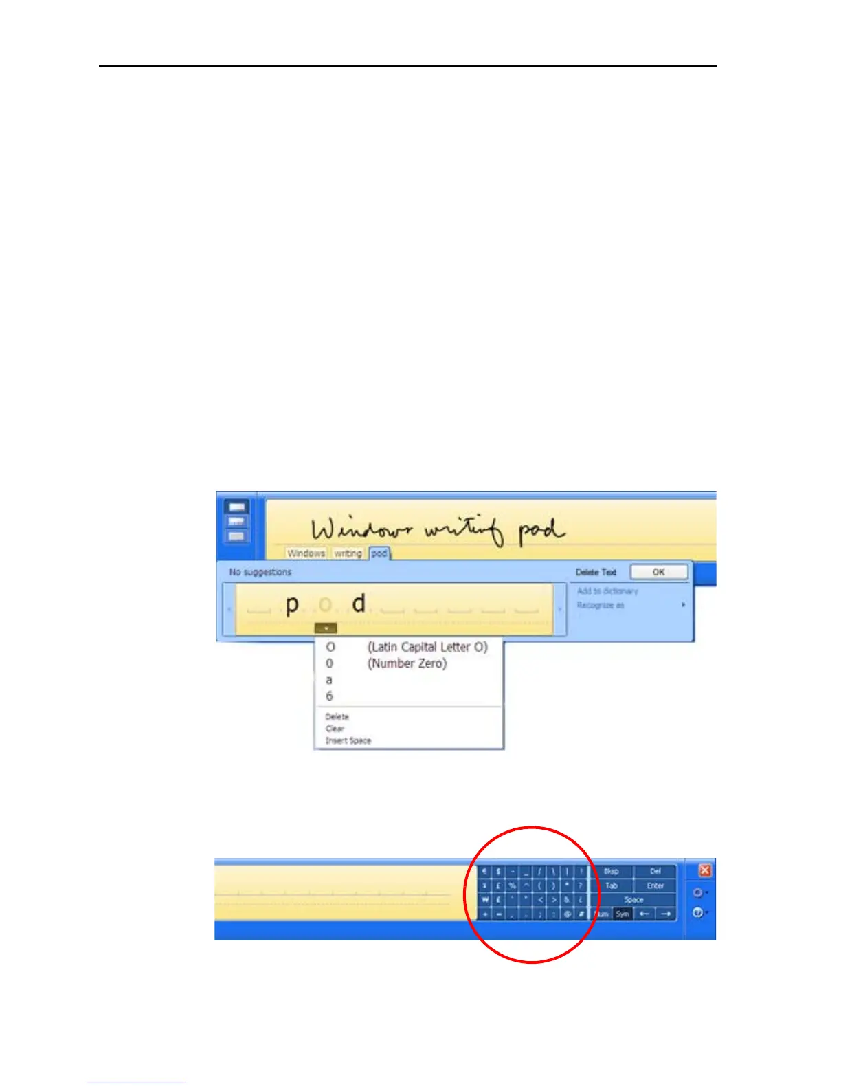 In the following example, either handwrite directly over the incorrect character or tap
