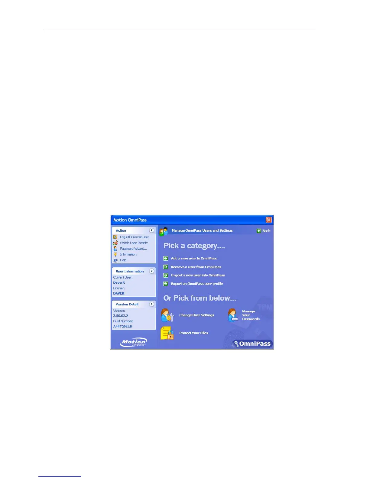 Other Motion OmniPass set-up functions. You can also tap the Change User