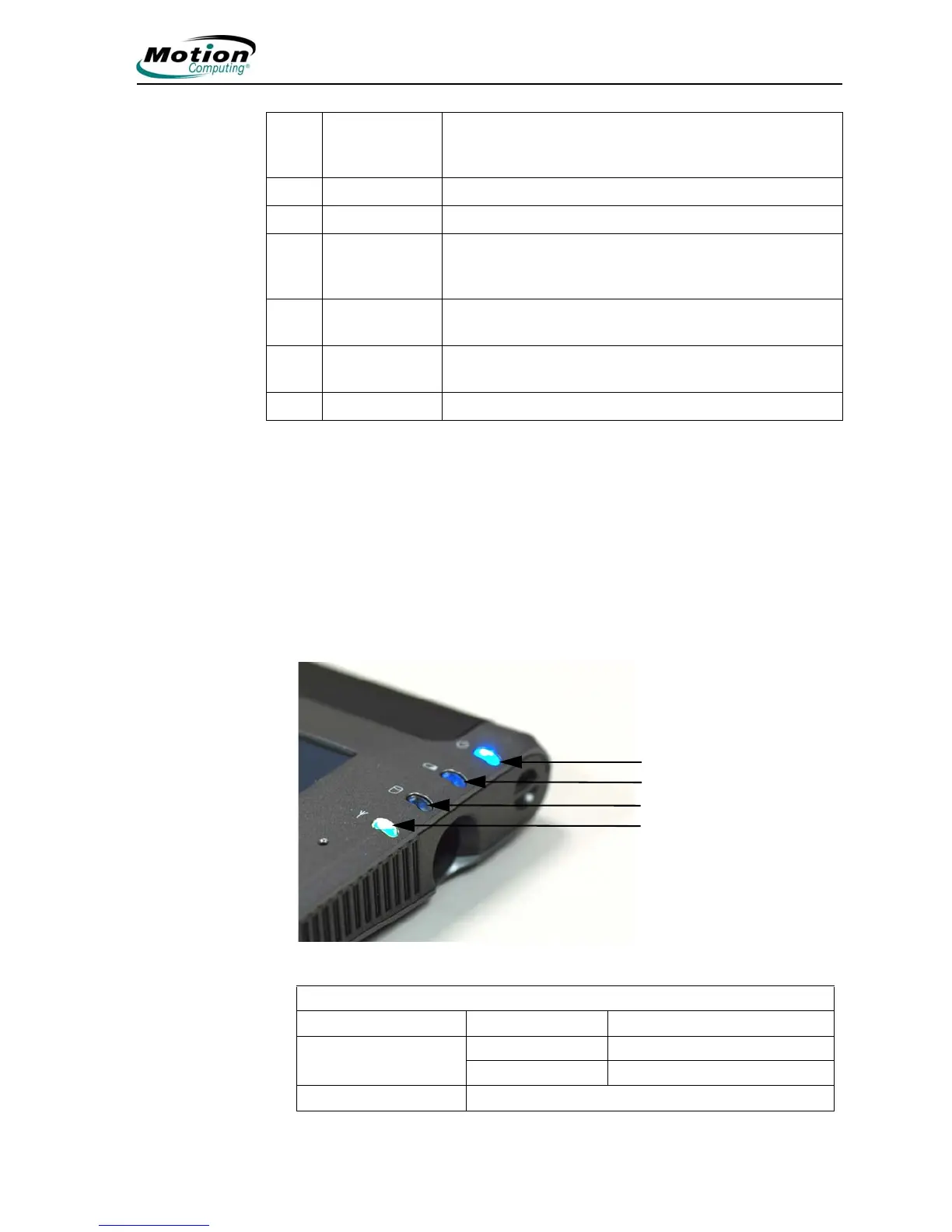 The front panel LEDs on the Motion LS800 Tablet PC are in the same