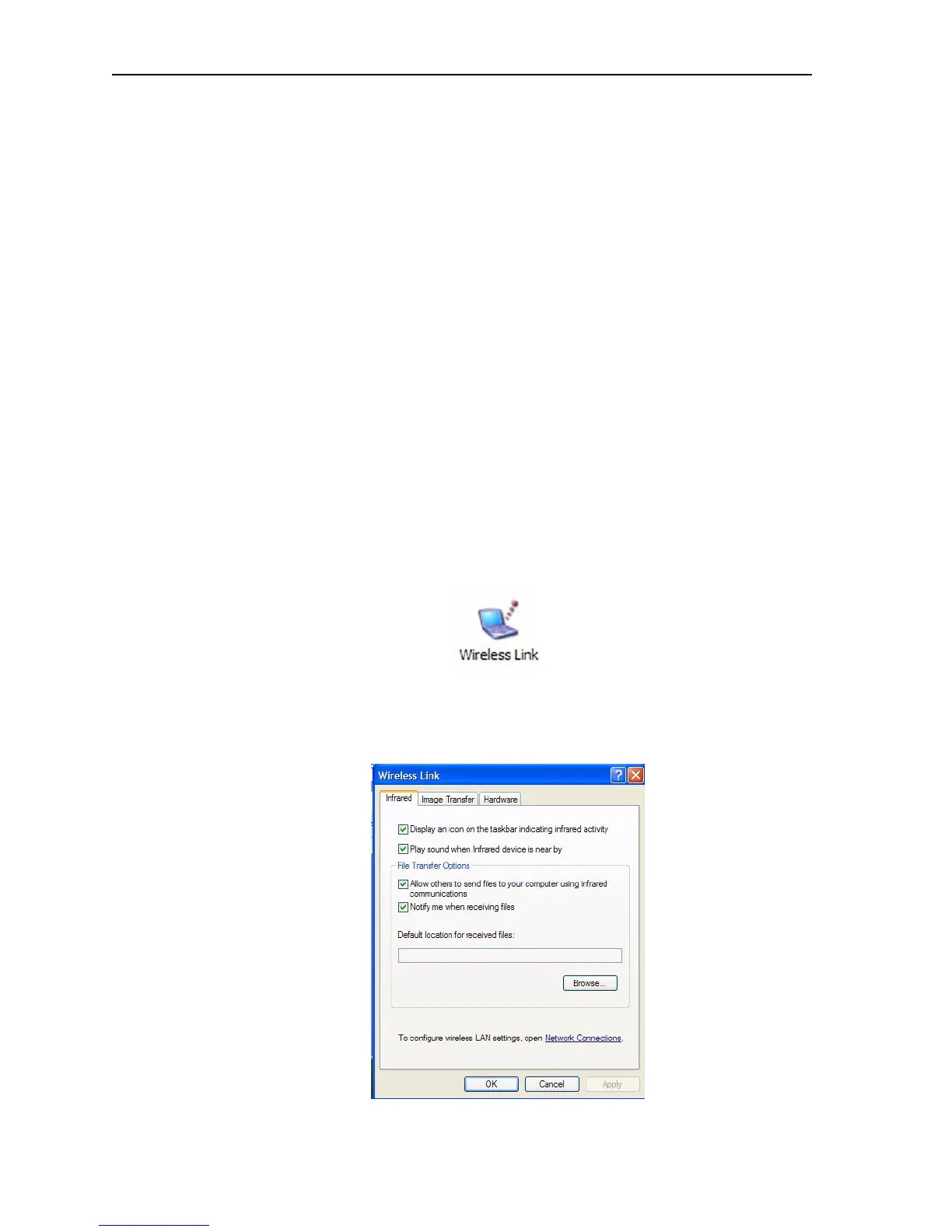 following shows the Wireless Link window at the Infrared tab. Tap the