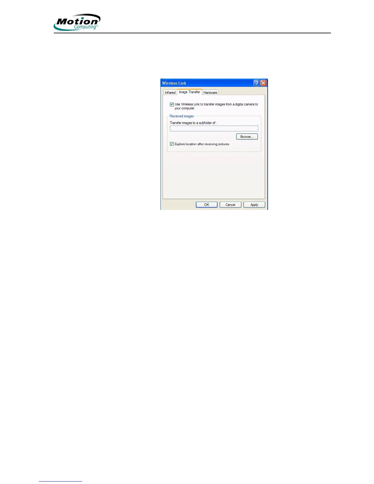your Tablet PC, tap the Image Transfer tab in the Wireless Link window.