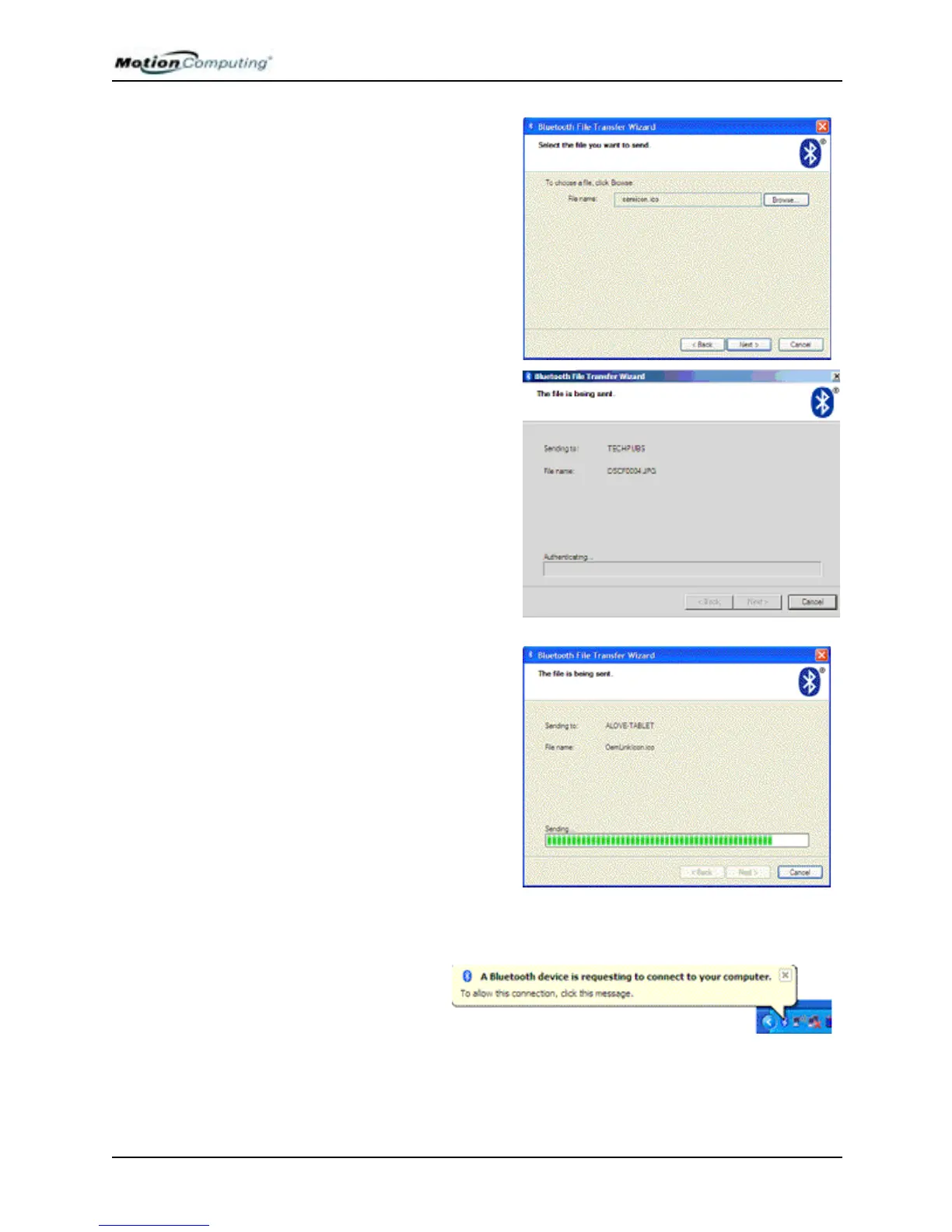 NOTE: Once you establish a connection between Tablet PCs, this message will