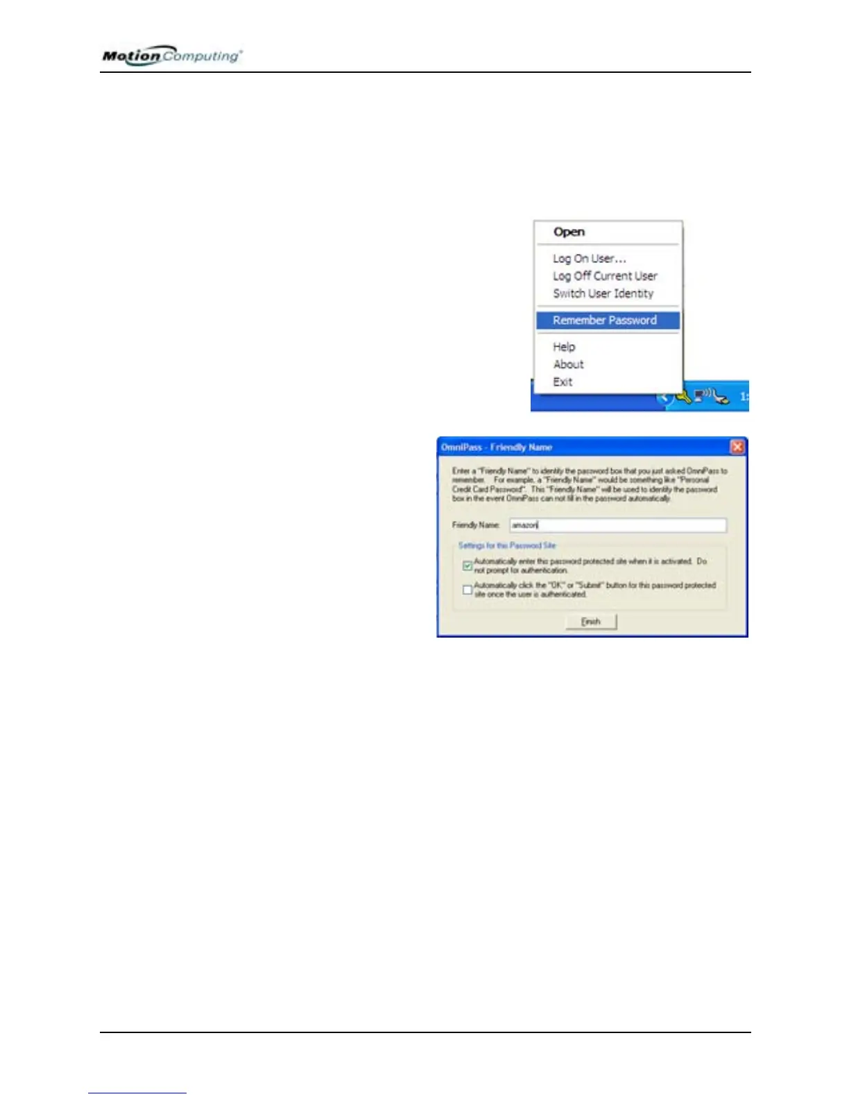 10. Tap Finish to complete the “Remember Password” procedure. The