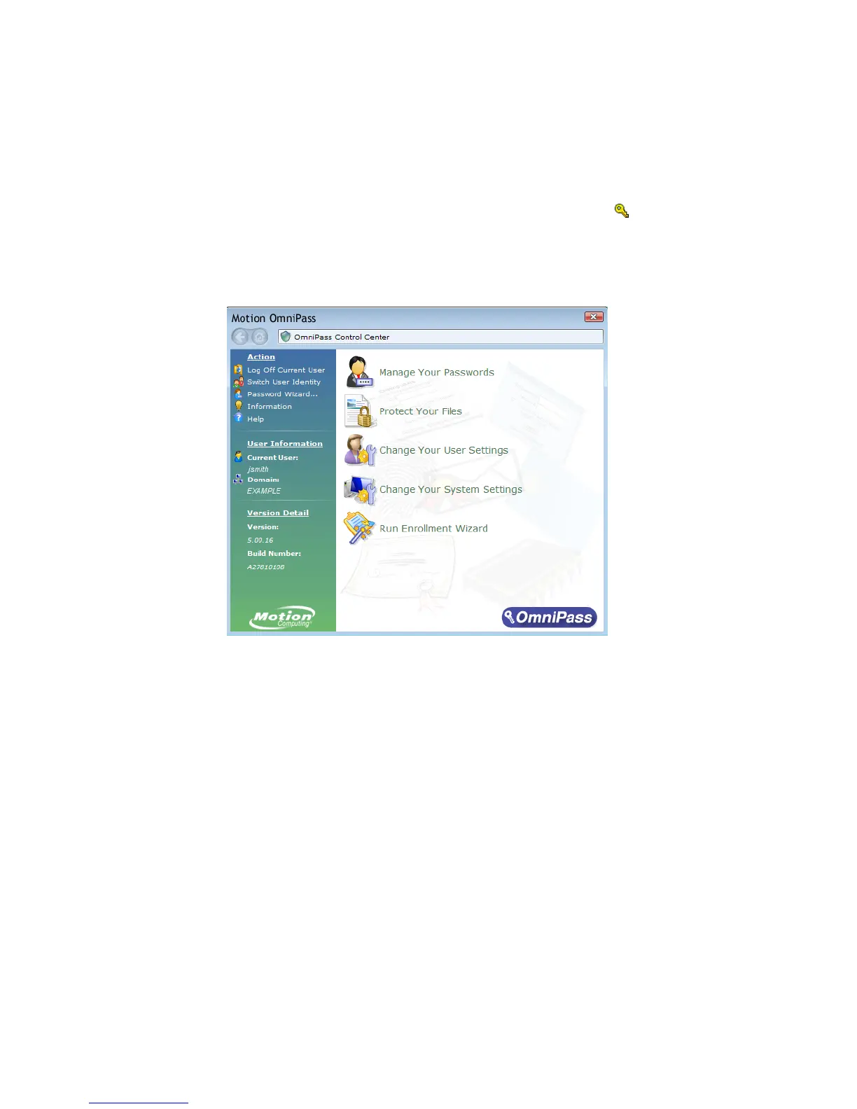 from Windows users), change OmniPass settings, manage passwords, and protect your files.