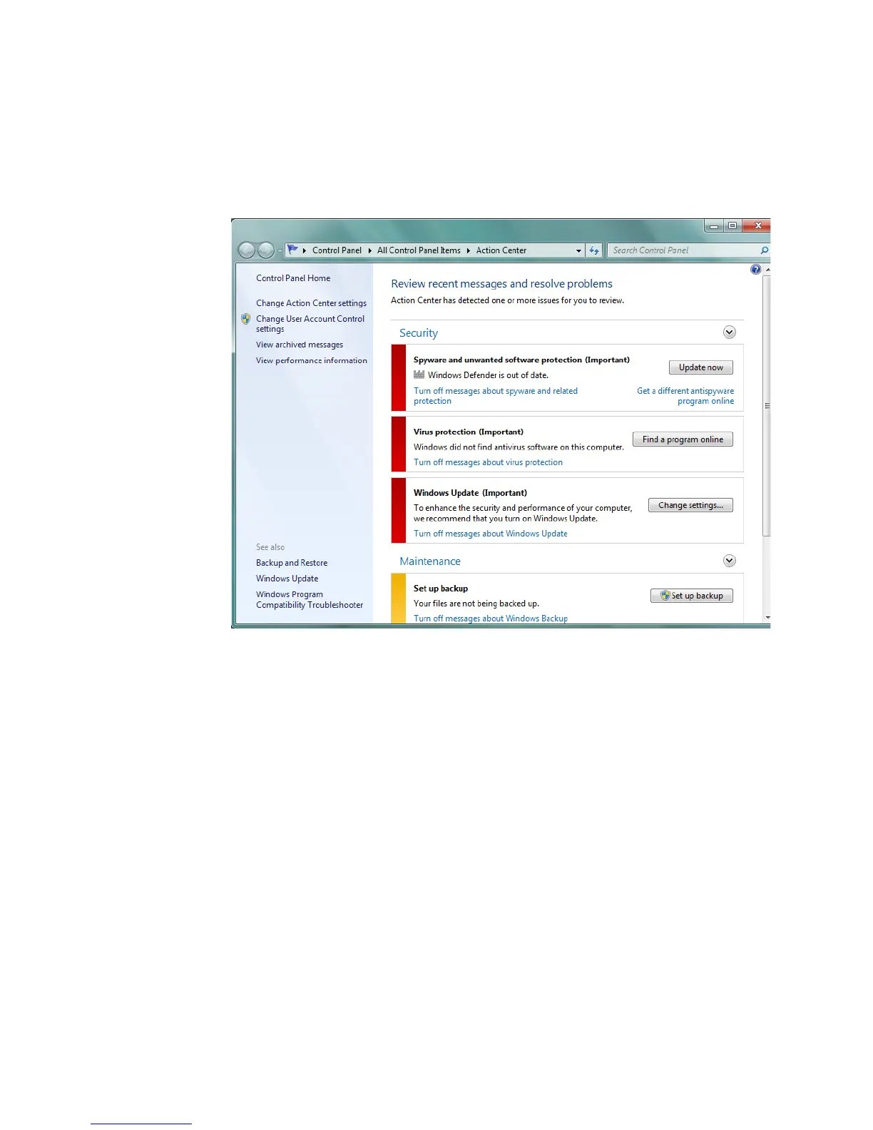 Windows Security Center provides a central location for you to manage the tablet’s security