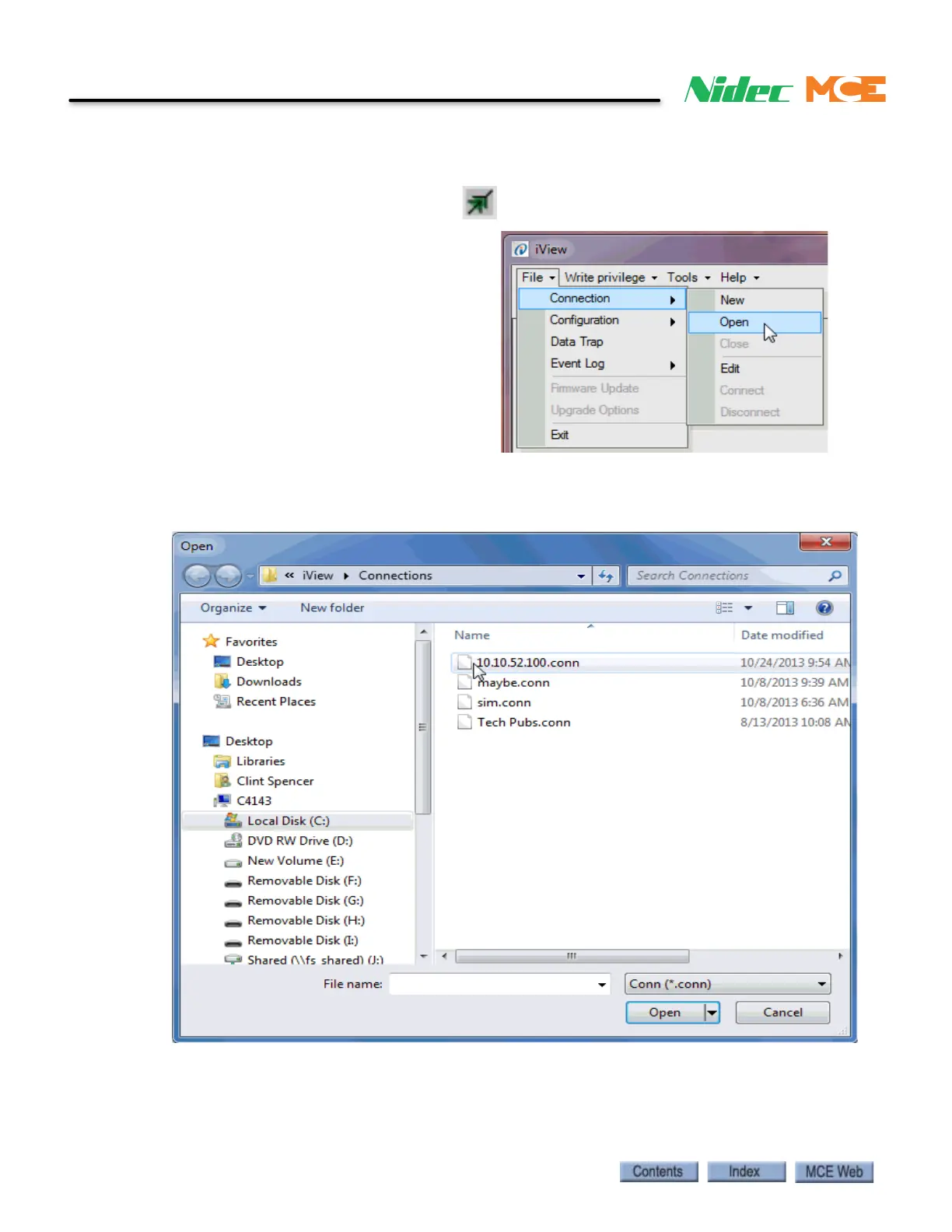 Connection and click Open. The