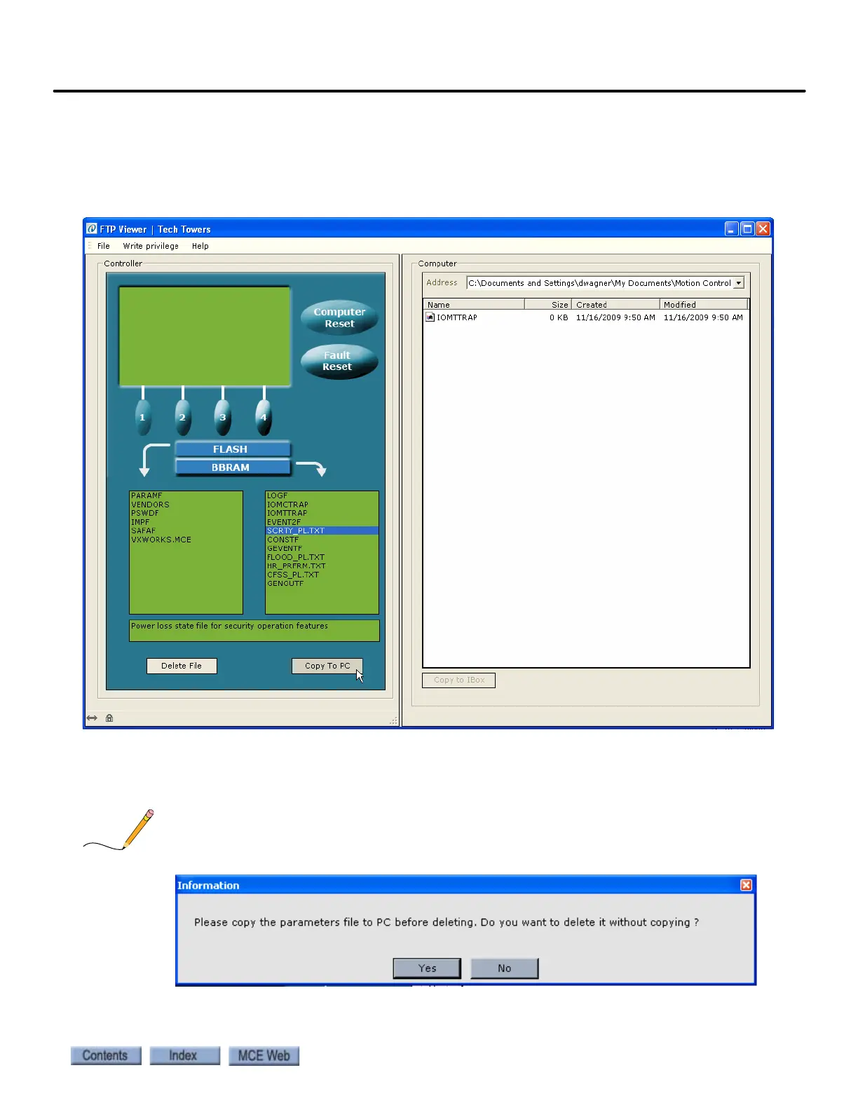 11. To delete a file from the Controller FLASH or BBRAM lists, select a file and