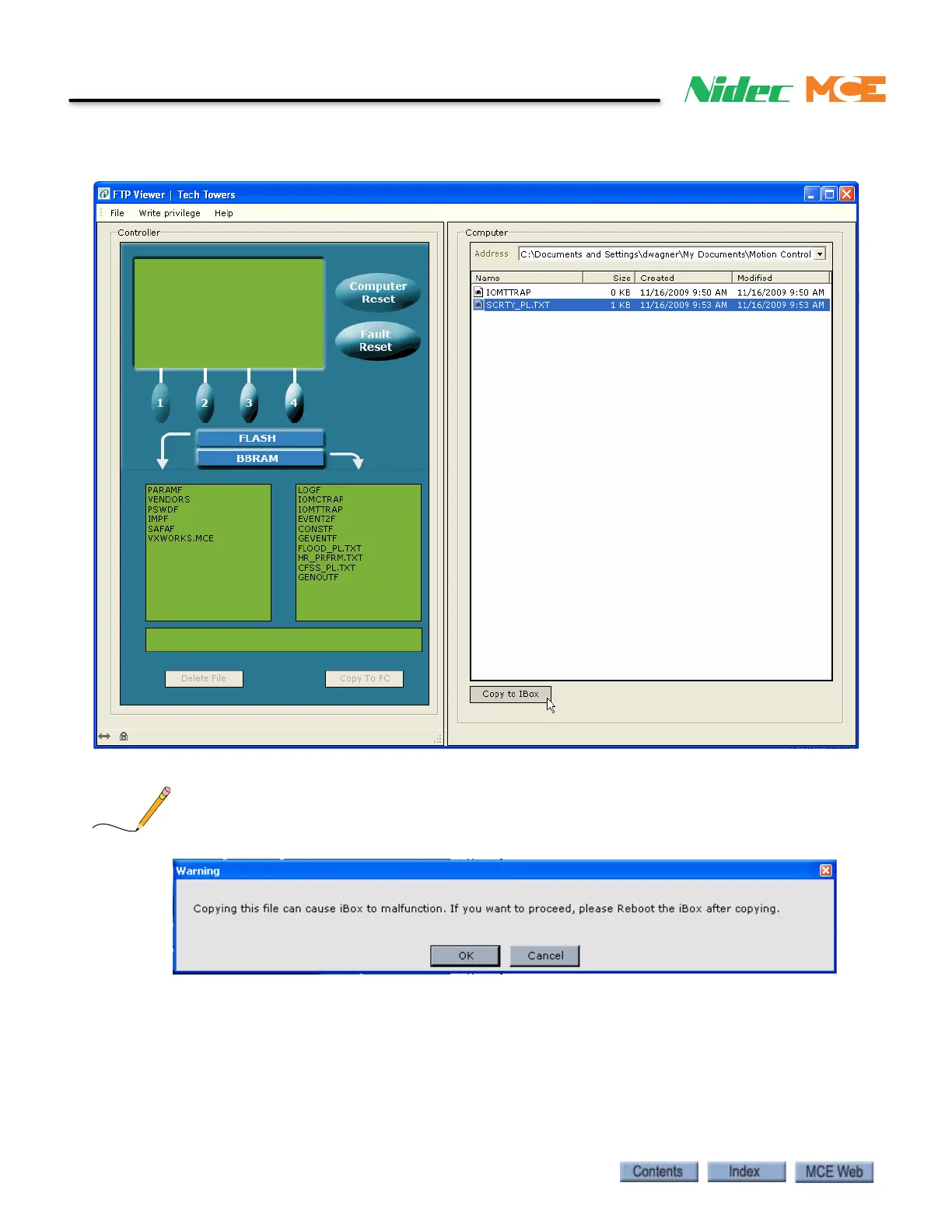 If you attempt to copy the VXWORKS file to the iBox, the following Warning message appears: