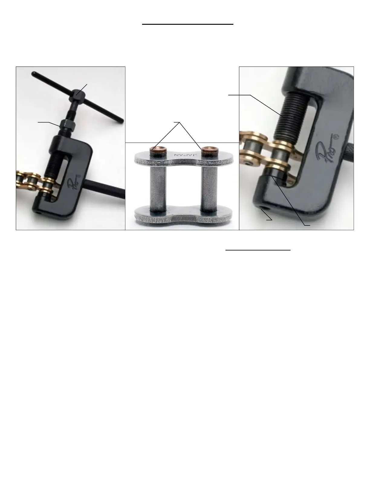 link. Position the tool over the chain pin to be riveted, with the hollow end of the chain pin facing the rivet tip,