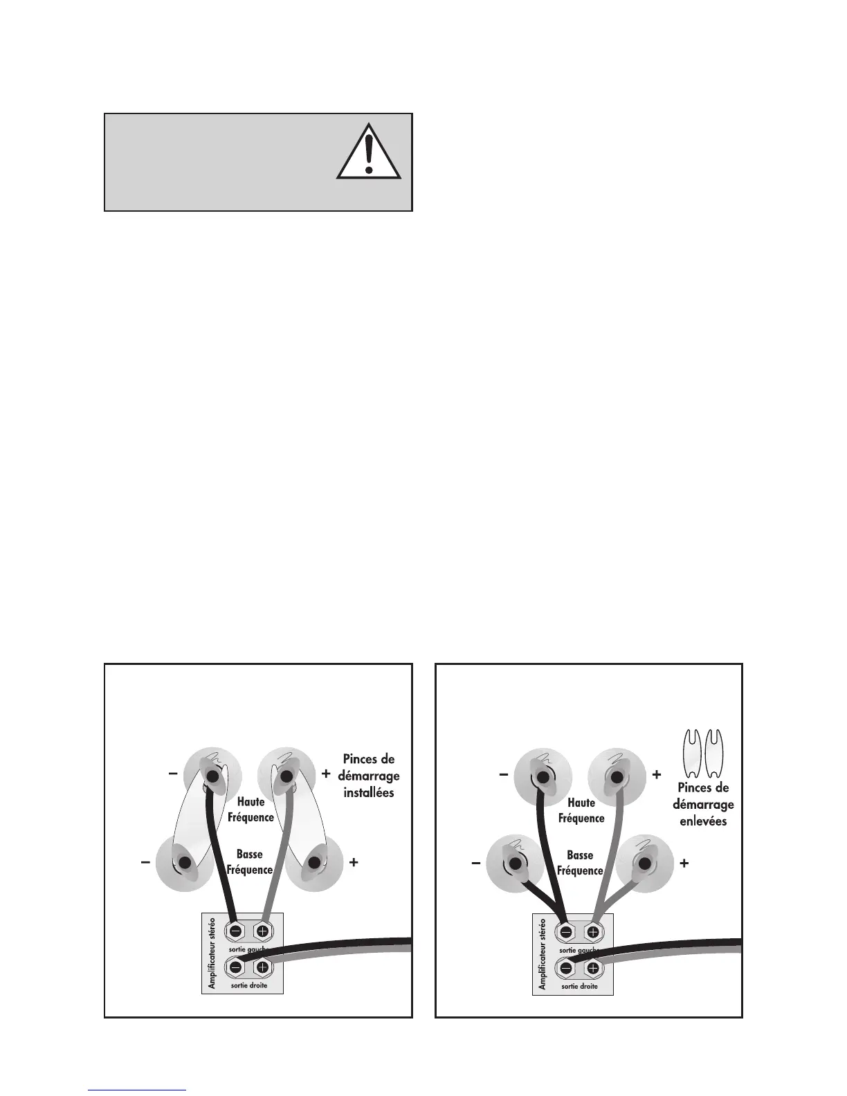 câbles de l’enceinte aux bornes du signal d’entrée.