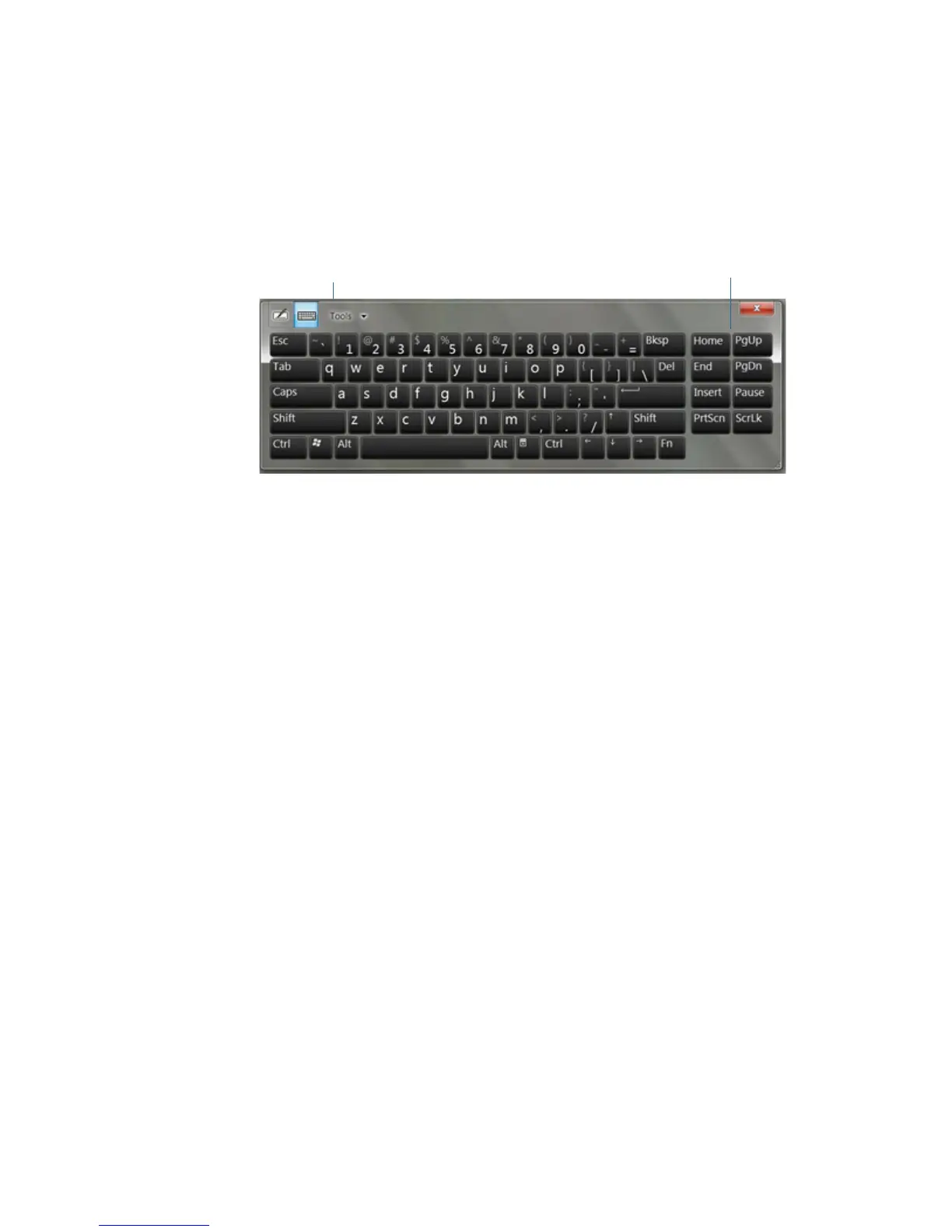 • Tap the Tools key at the top of the input panel and choose Show Expanded Keyboard.