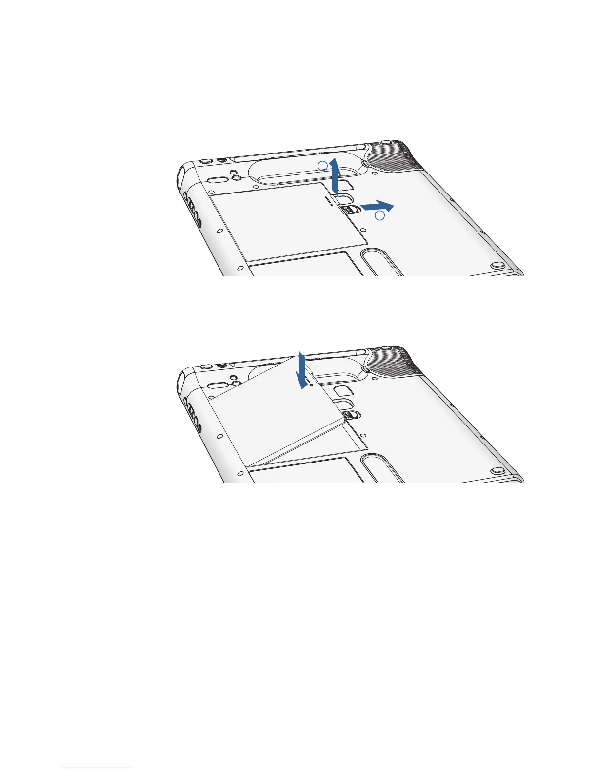1. With the back of the unit facing you, slide and hold the battery latch.