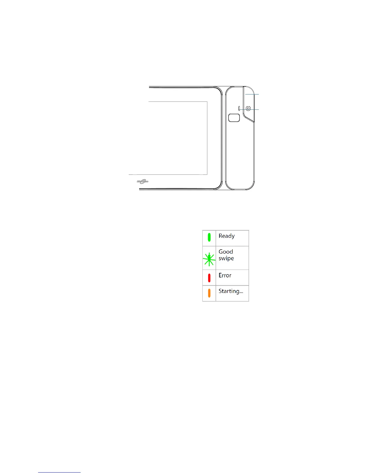 The magnetic stripe reader is on the right side of the CL900 SlateMate and a status light