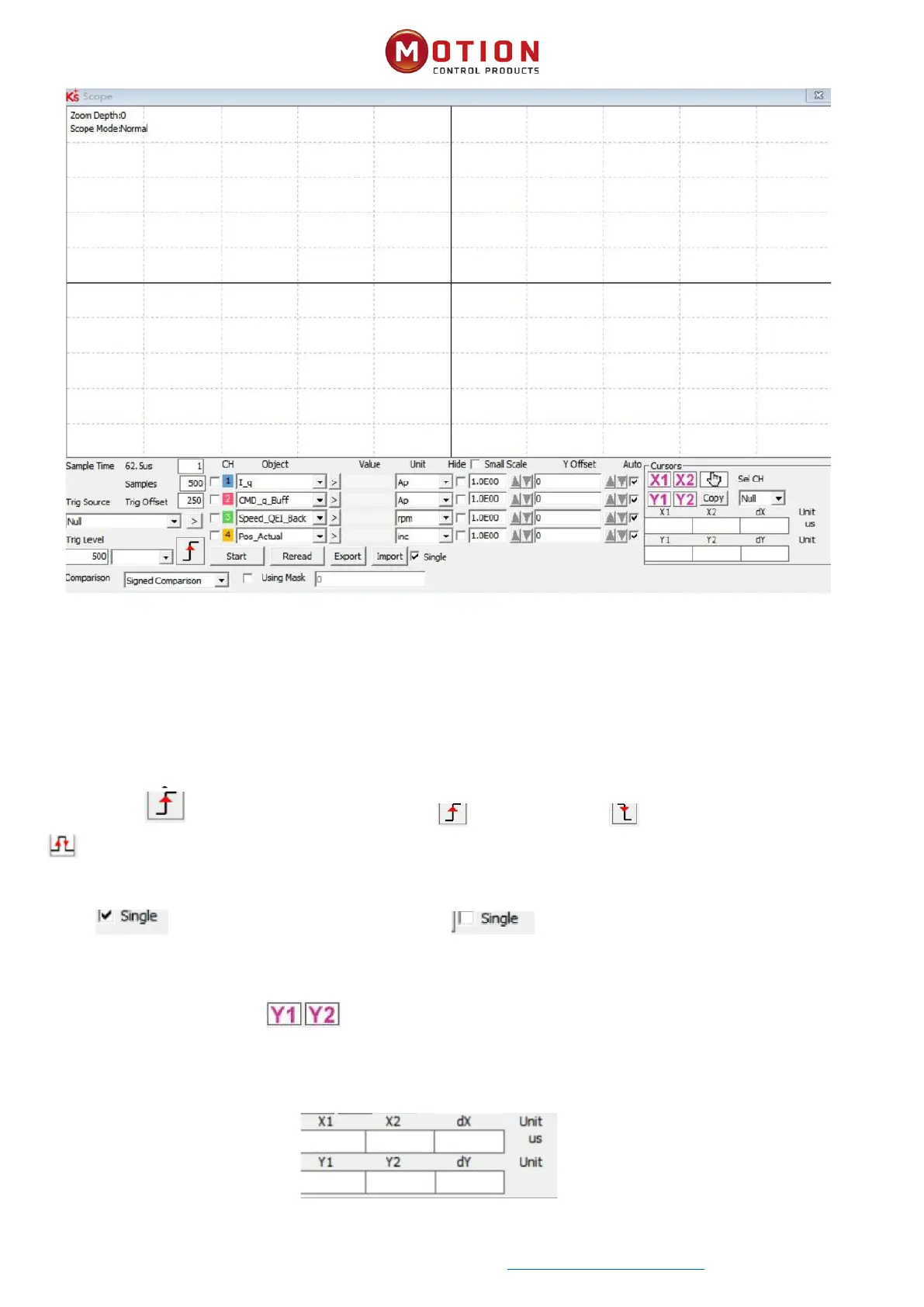 Cursors: By clicking on the buon can select the corresponding cursor, The cursor will appear on the oscilloscope