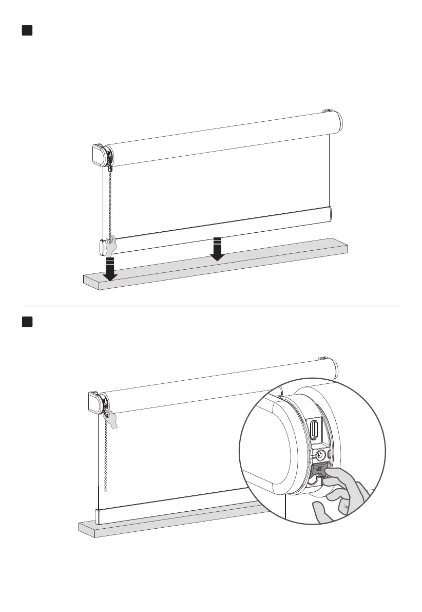 Wenn sich Ihr Rollo an der unteren Position befindet, halten Sie die Taste gedrückt, bis das