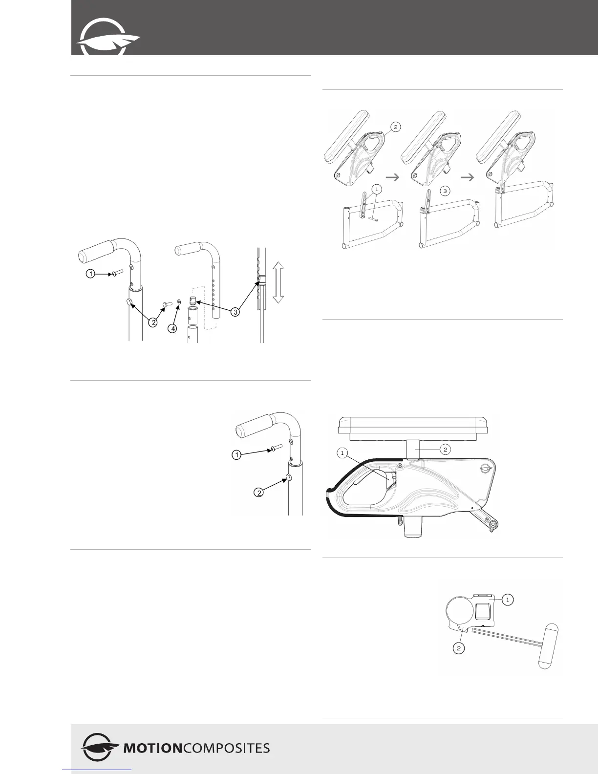 • Insert the armrest (2) on the flipback pivot than rotate it until