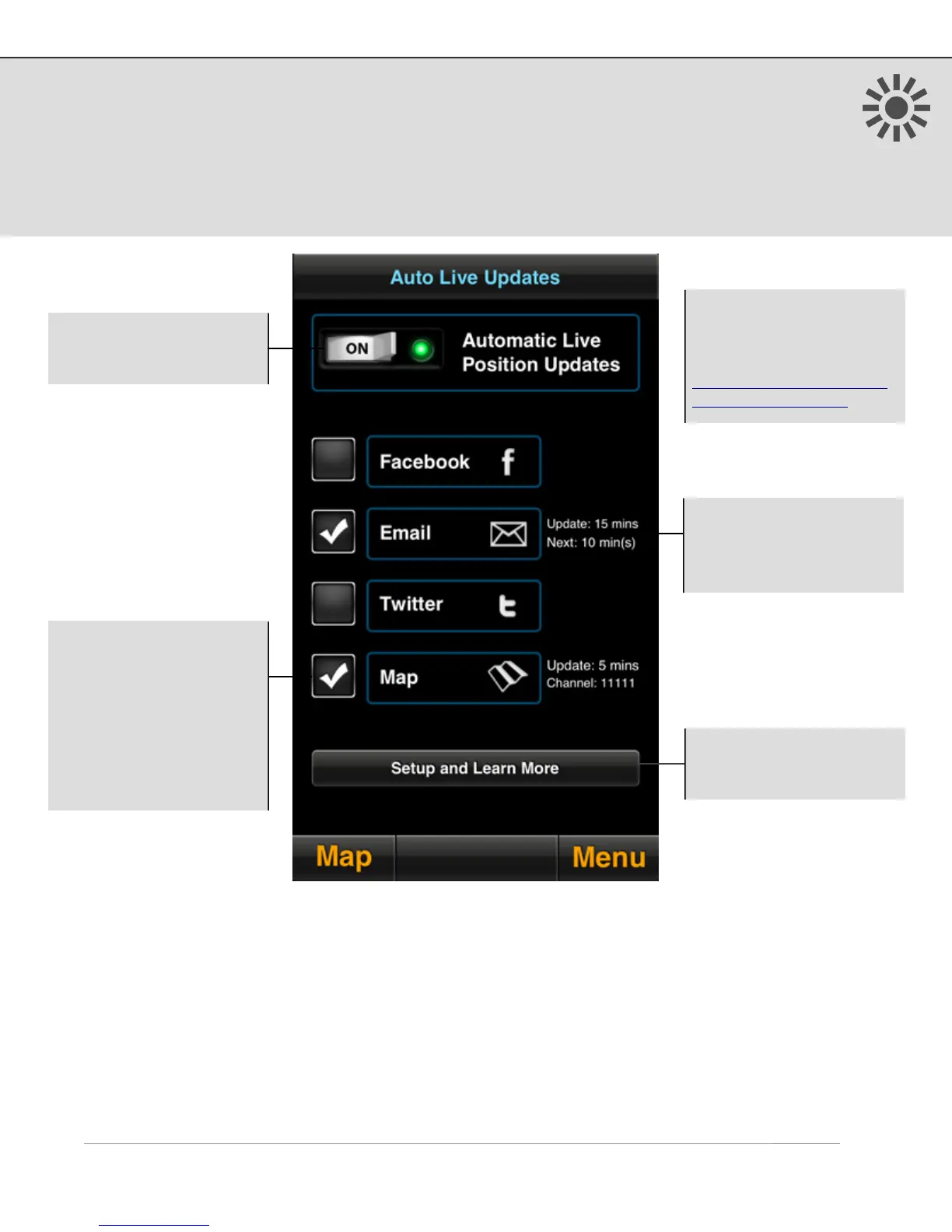 Share your real-time position automatically via Facebook, Twitter, email, or displayed