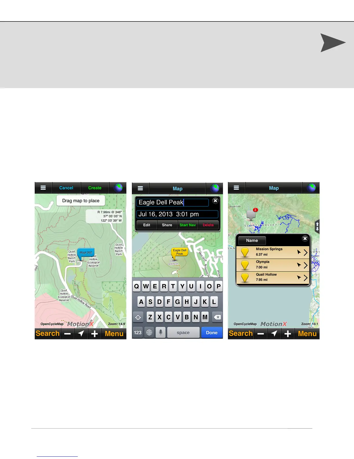 • Use the MotionX TapTap® tool on the map to create, edit, share, and navigate to