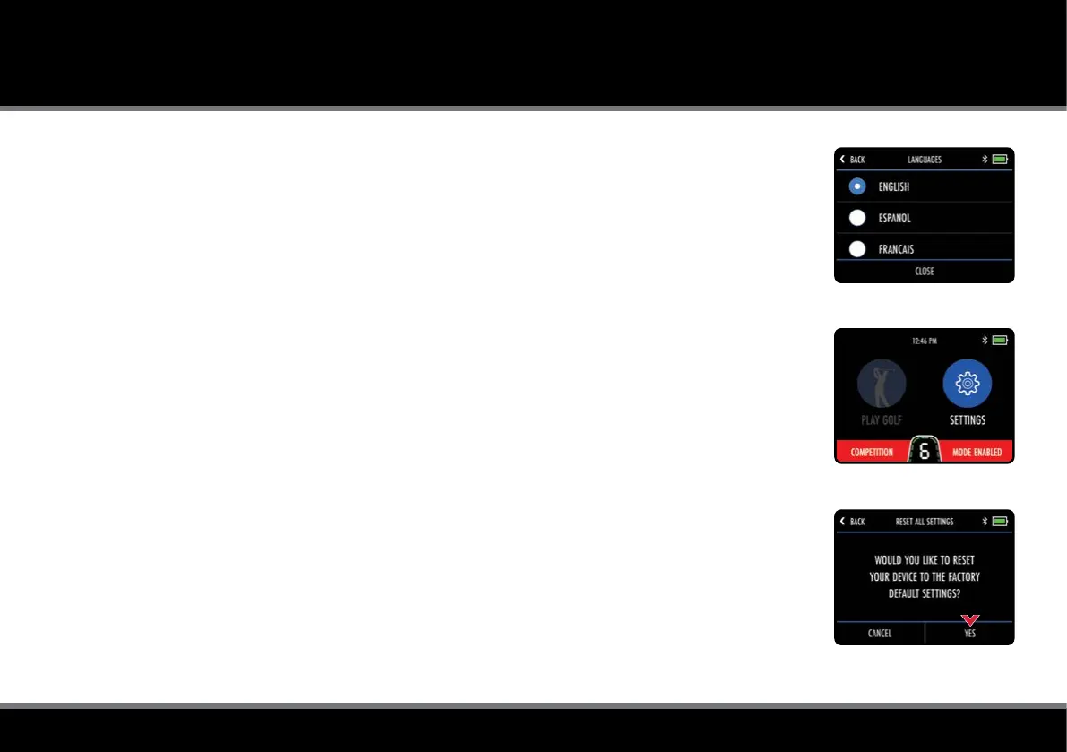 LANGUAGE SETTINGS / COMPETITION MODE / FACTORY RESET