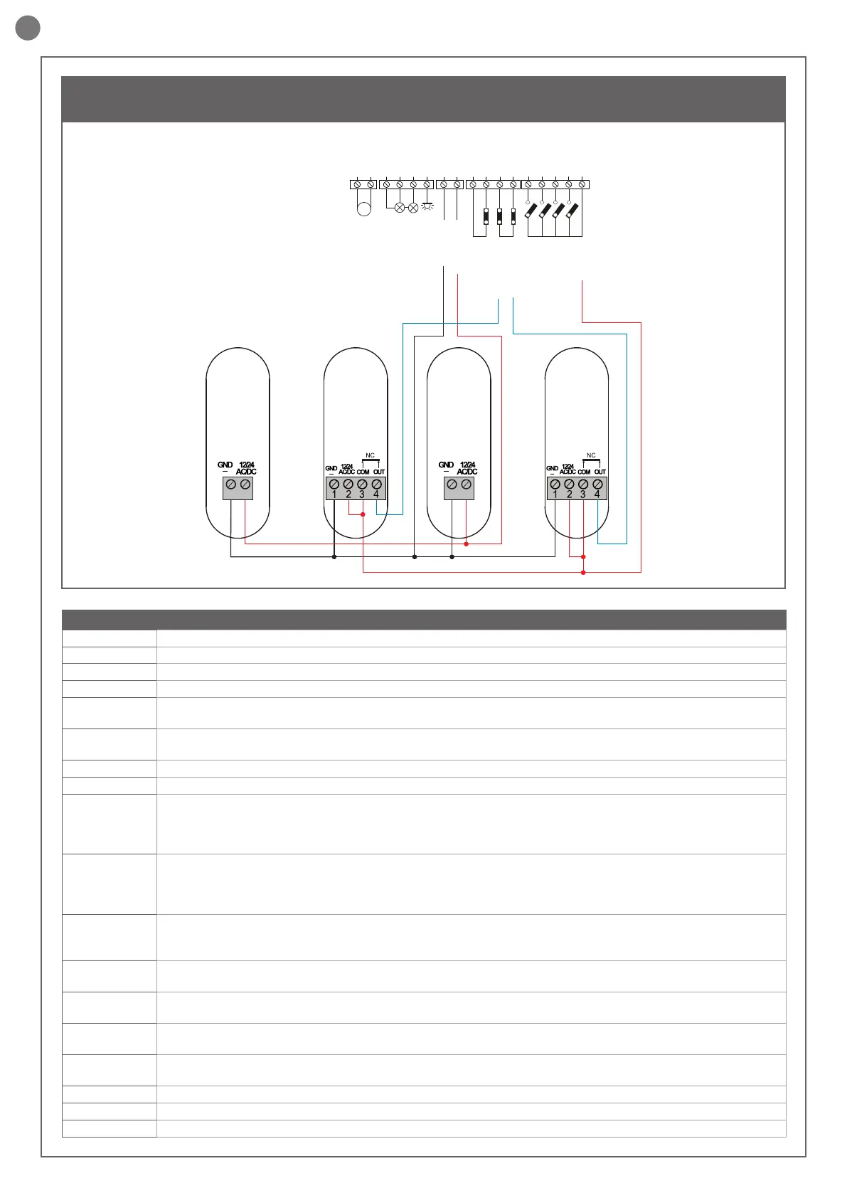 IND output for gate open indicator light 24 Vdc not regulated 5W MAX / Electric lock output 12Vac, 15VA maximum