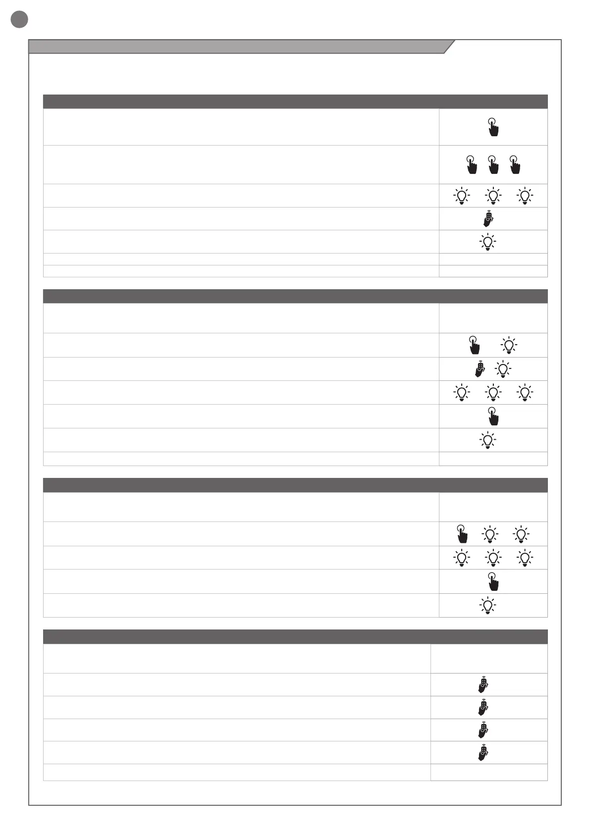 2. La LED clignote le nombre de fois correspondant au numéro de la sortie sélectionnée avec une pause d’une