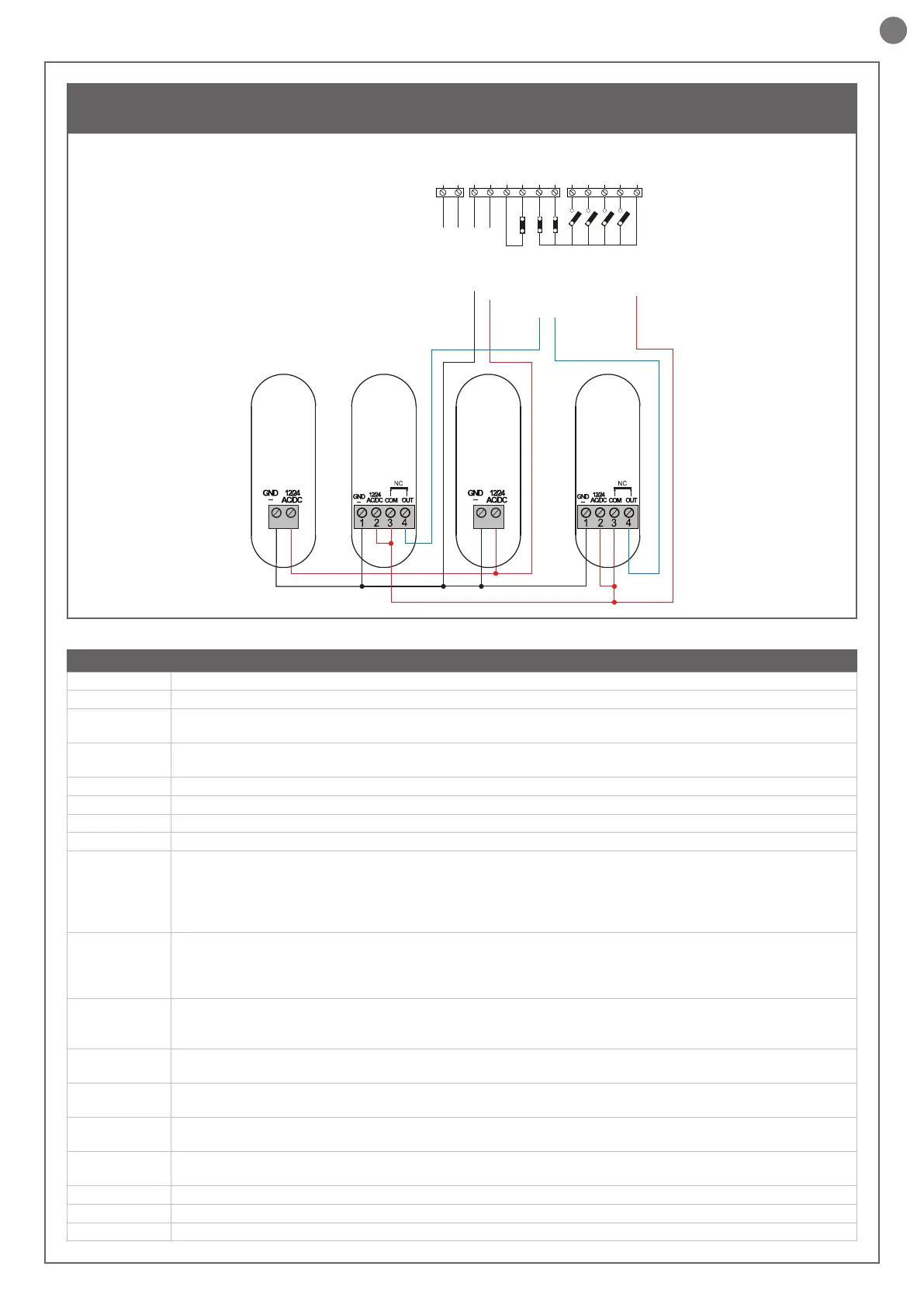 Saída da luz de cortesia 24Vdc (não regulado), máximo 25W, controlável também via rádio ON-OFF (4° canal rádio