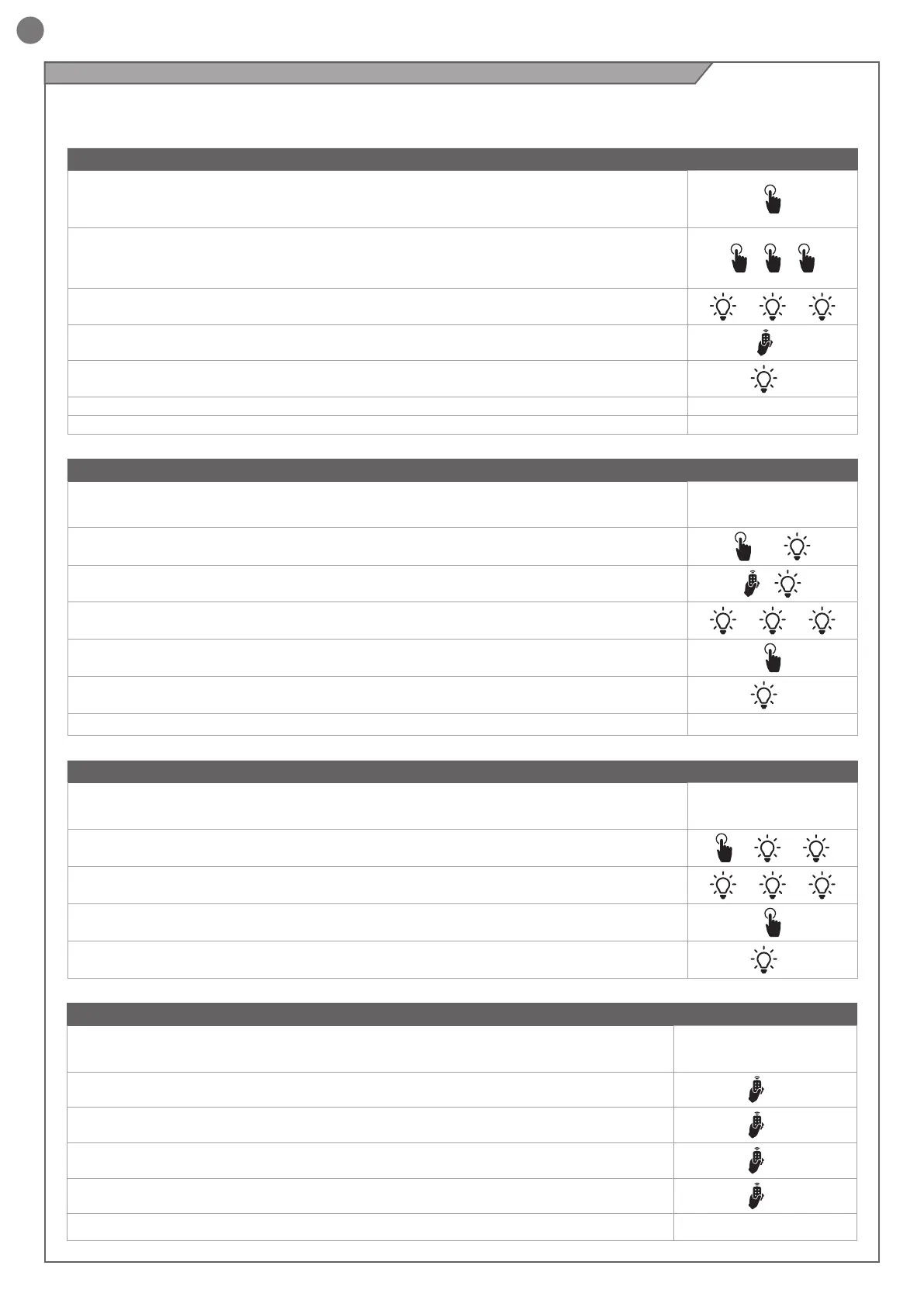 SOMENTE ABERTURA, 4 vezes para a saída LUZ ON/OFF, 5 vezes para a saída 5 PRÉ-CONFIGURADA