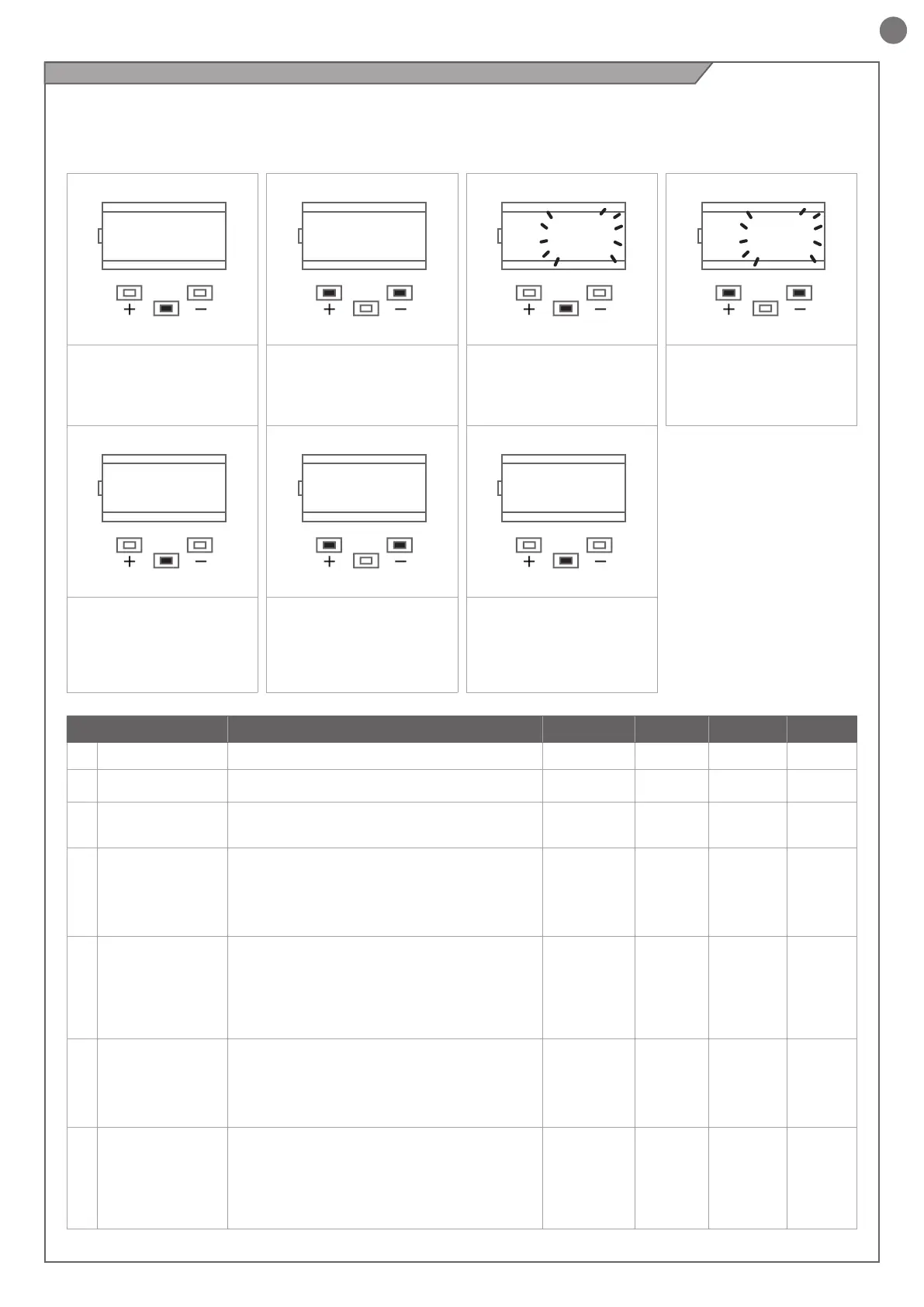 Premer as teclas “+” e “–” para