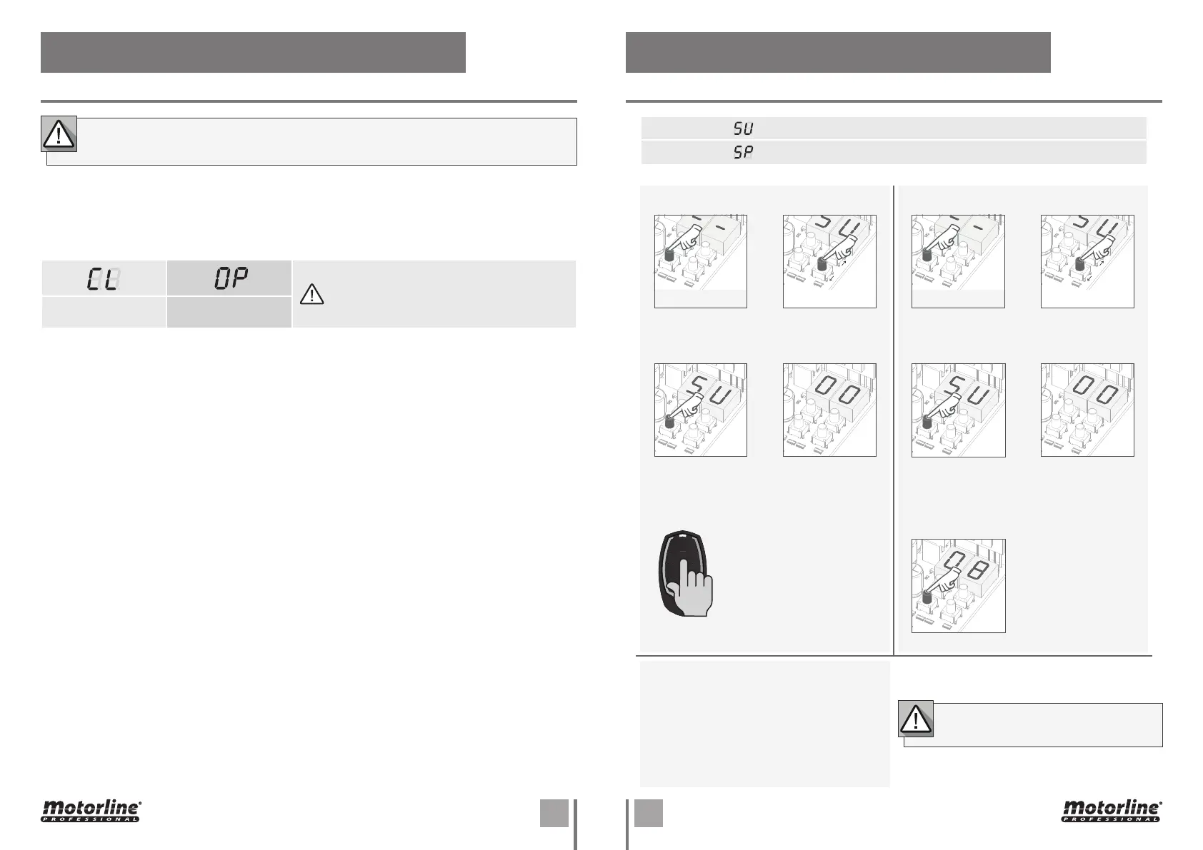 04 • Check the limit switches so that the CL LED goes out when the closing limit switch is