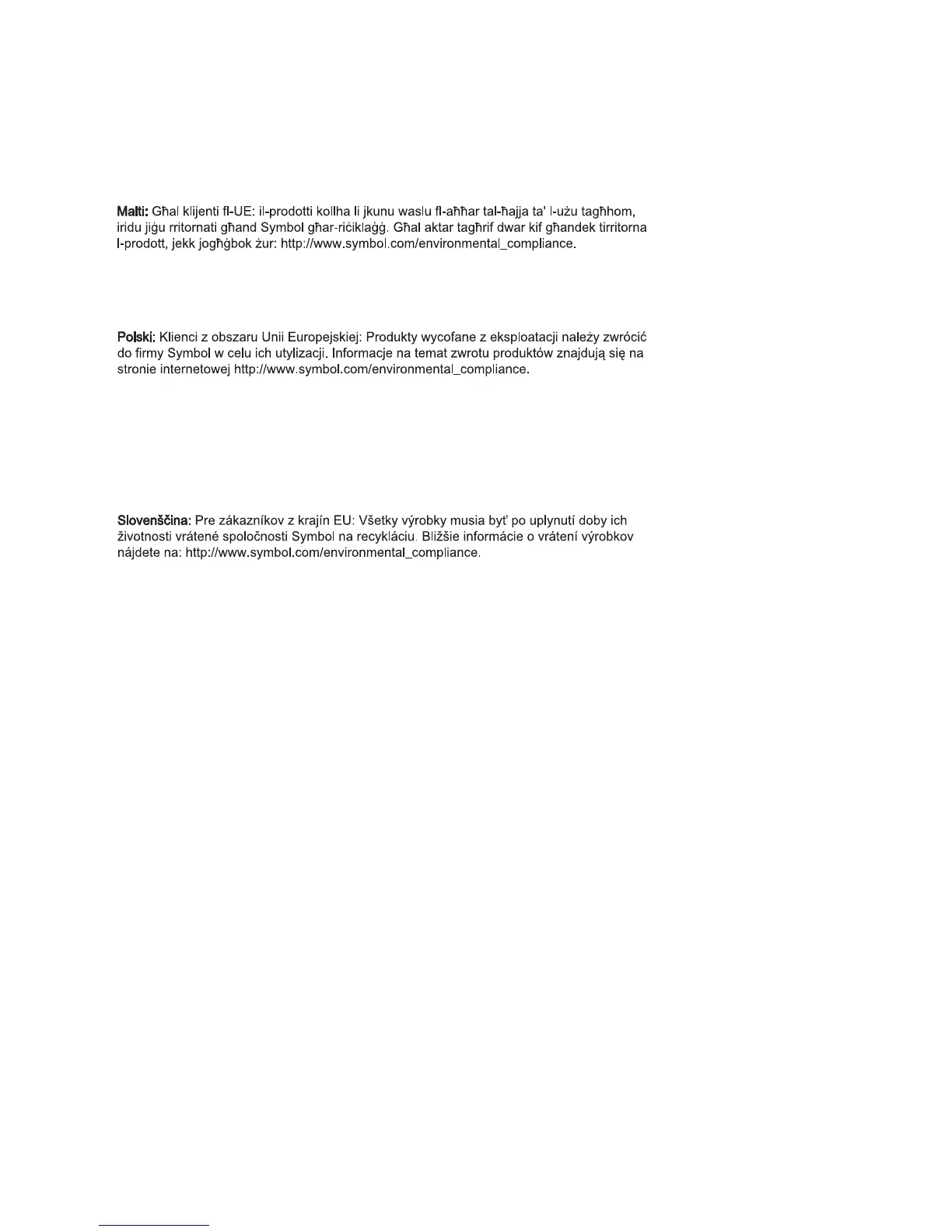 Symbol za reciklažo. Za informacije o vraèilu izdelka obišèite: http://www.symbol.com/