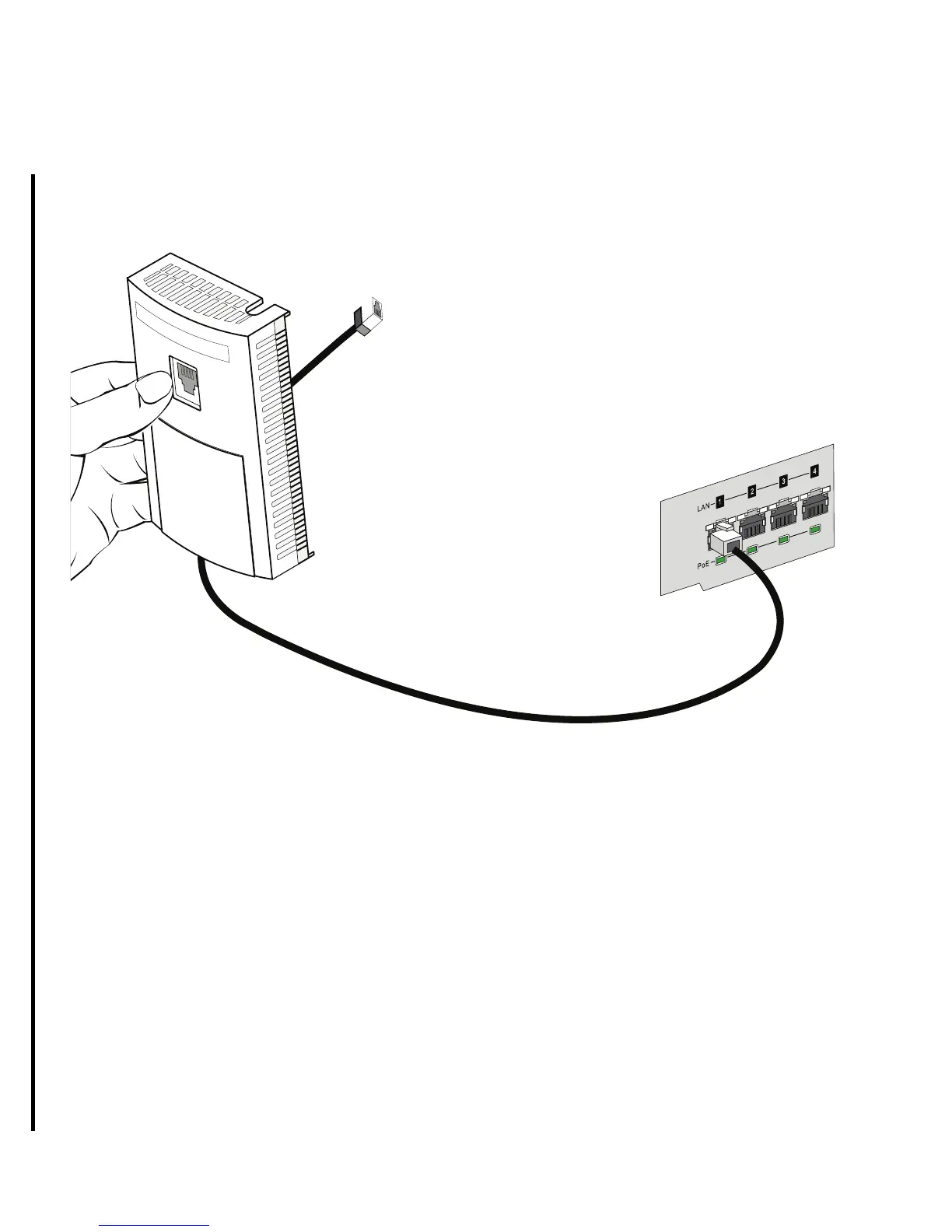 8. Install the RJ-45 double plug uplink jumper into the UP1/POE jack and connect it into the