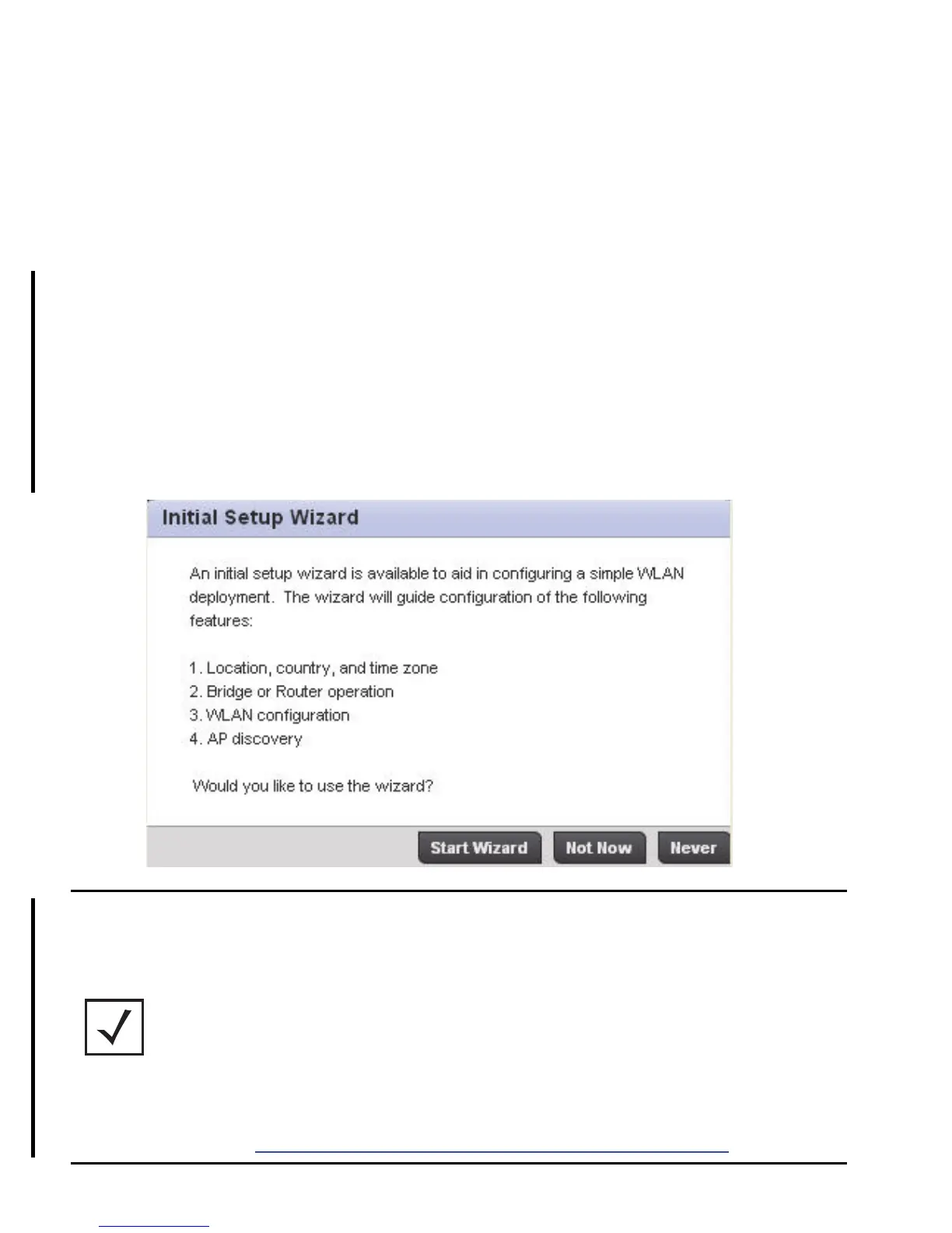 adopted by a Controller AP, the Initial Setup Wizard no longer displays in subsequent logins.