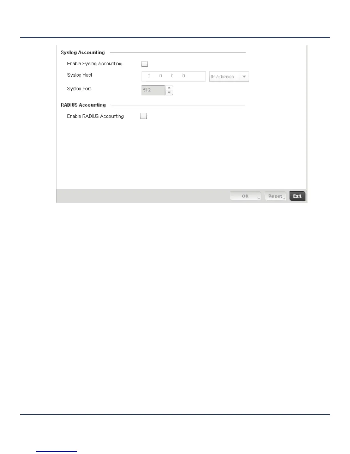 6. Select OK when completed to update this WLAN’s accounting settings. Select Reset to revert the screen