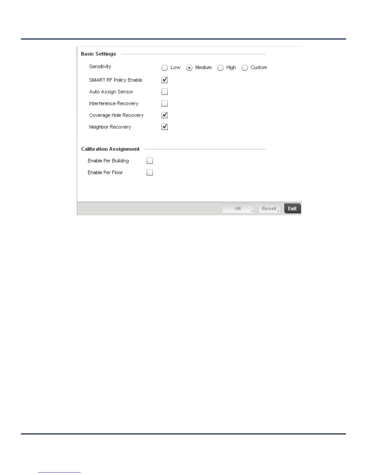 4. Refer to the Basic Settings field to enable a Smart RF policy and define its sensitivity and detector