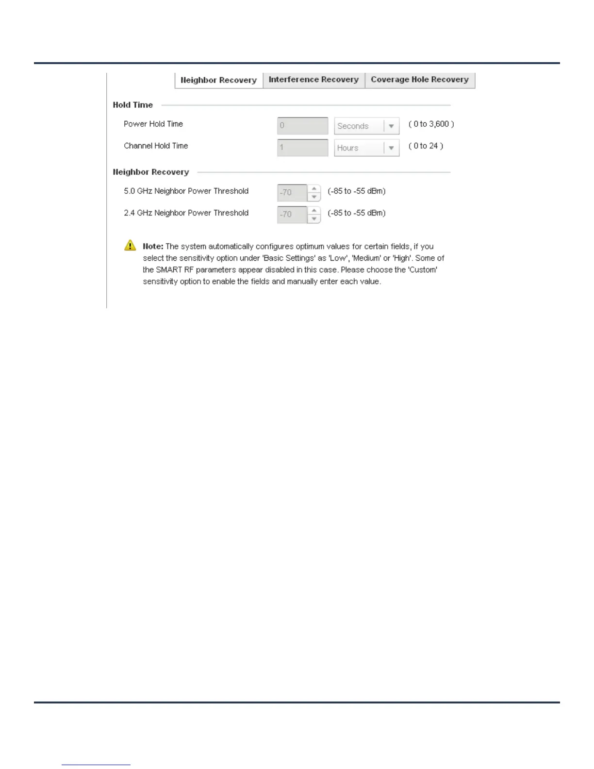 Figure 6-27 Smart RF Advanced Configuration screen - Neighbor Recovery tab