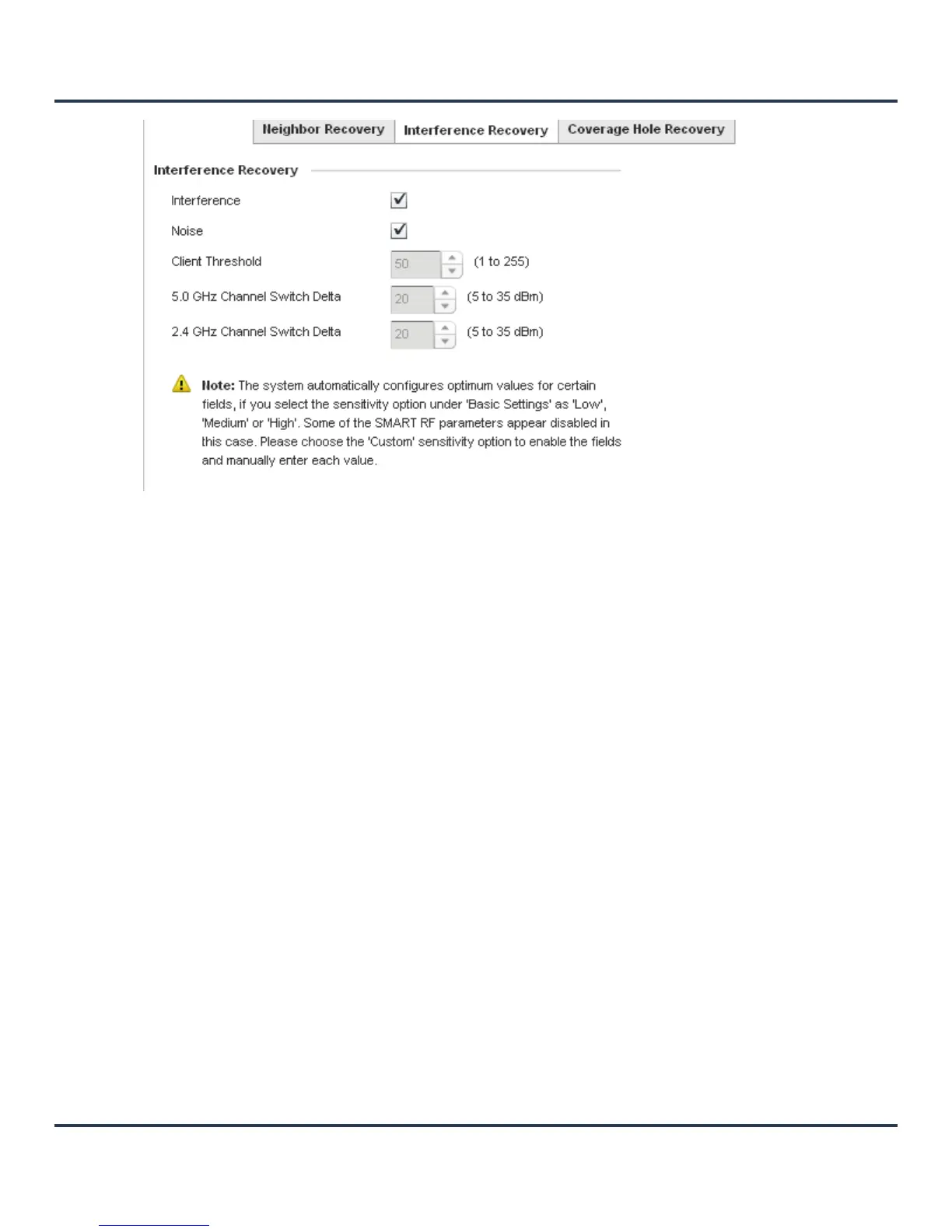 Figure 6-28 Smart RF Advanced Configuration screen - Interference Recovery tab