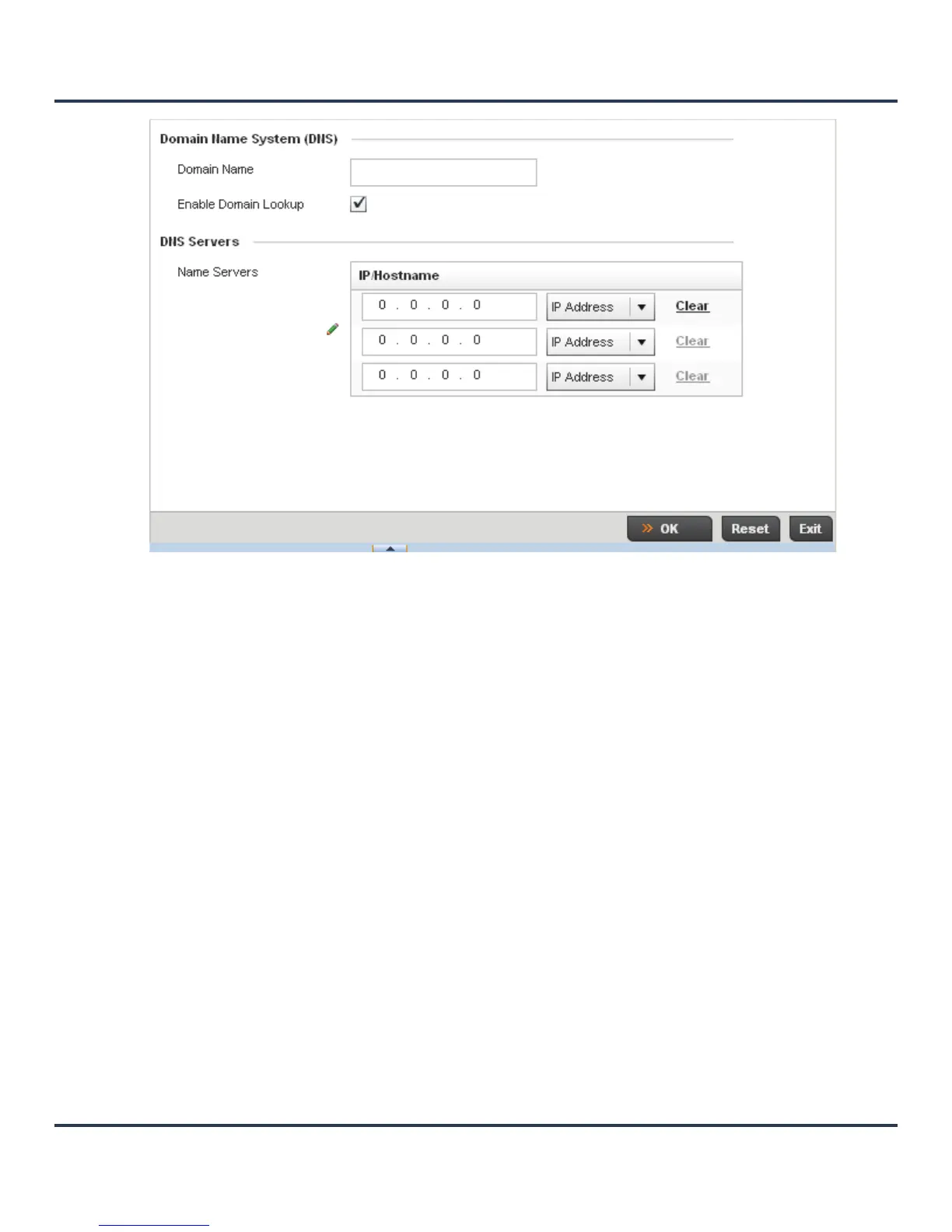 7. Select OK to save the changes made to the DNS configuration. Select Reset to revert to the last saved