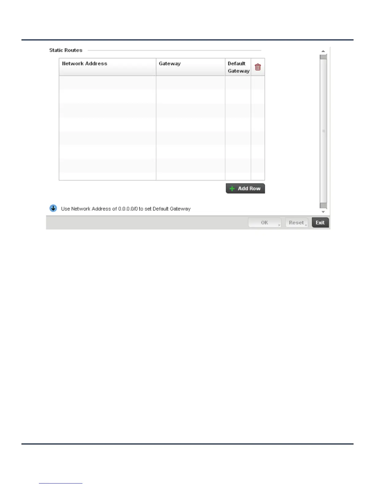 4. Select Add Row + as needed to include single rows in the static routes table.