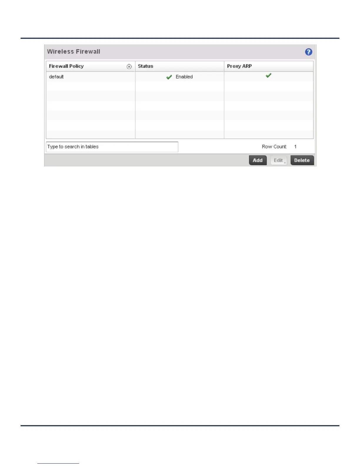 3. Select Add to create a new Wireless Firewall policy, Edit to modify the attributes of an existing policy