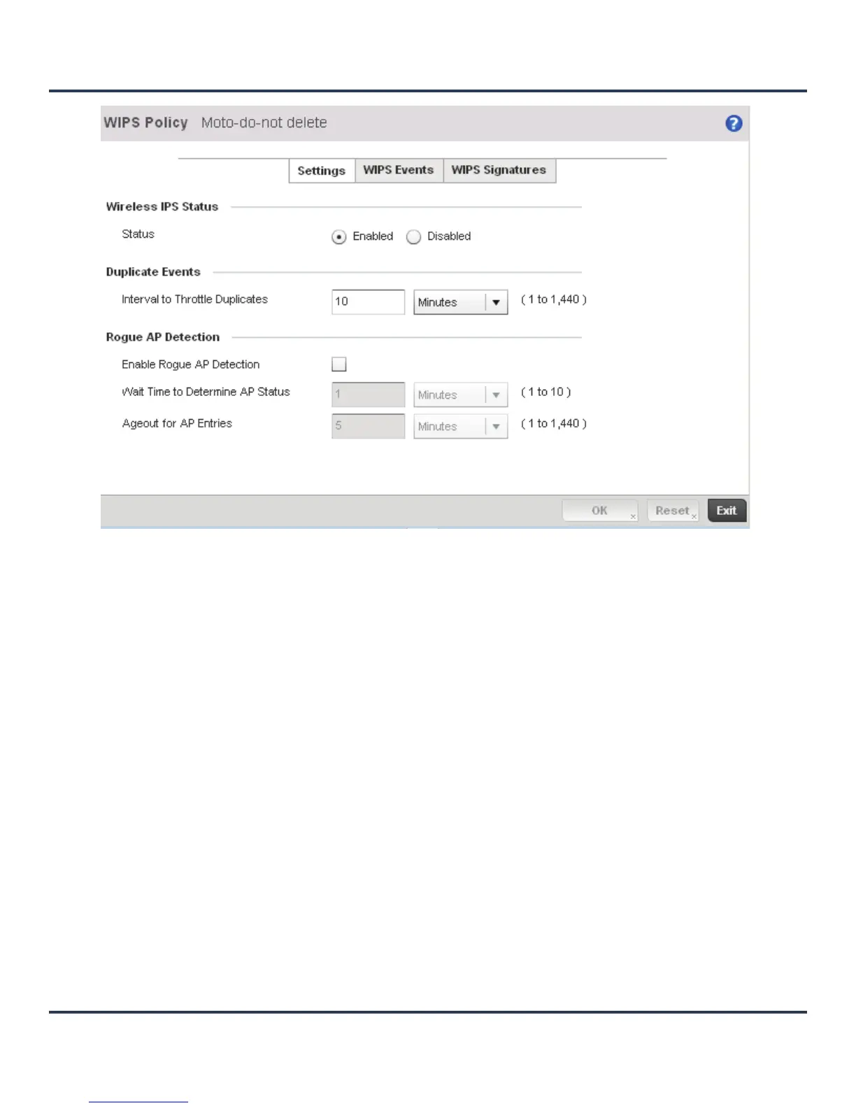 activate or de-activate the WIPS policy for use with a profile. The default setting is disabled.