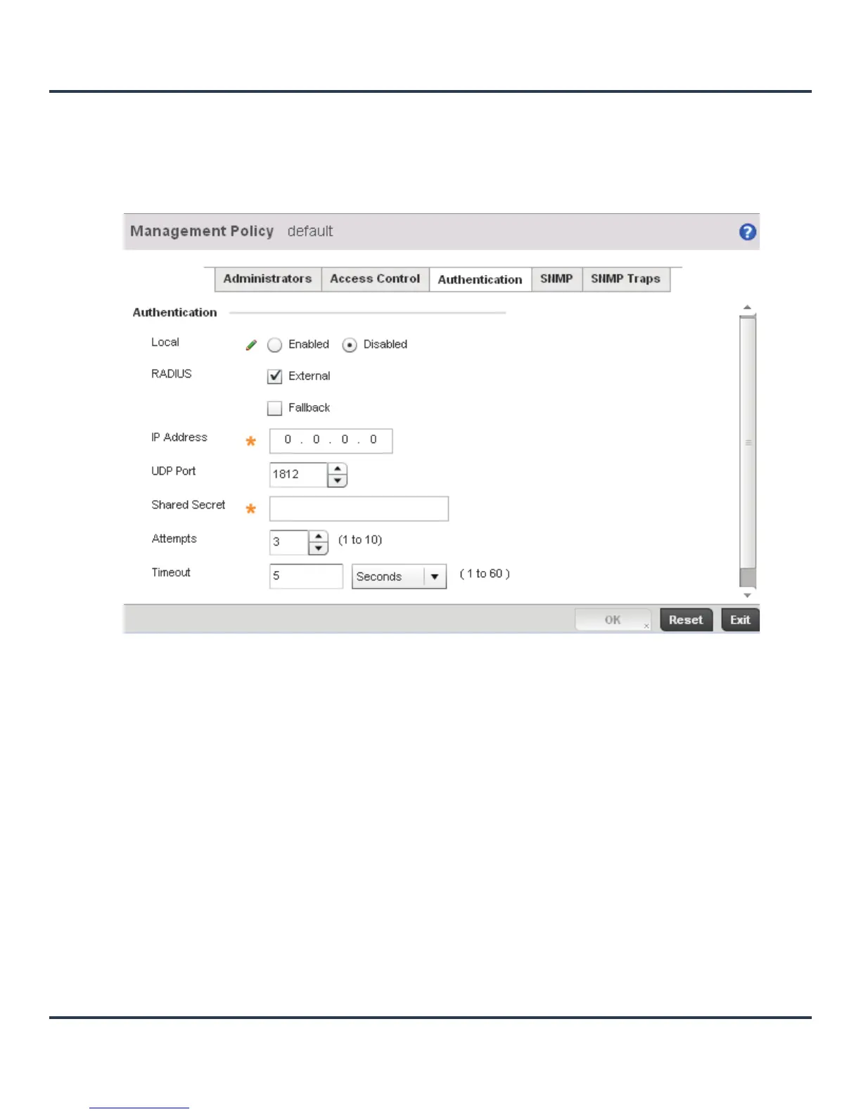 2. Set the following AP-6511 external resource settings to authenticate management access requests:
