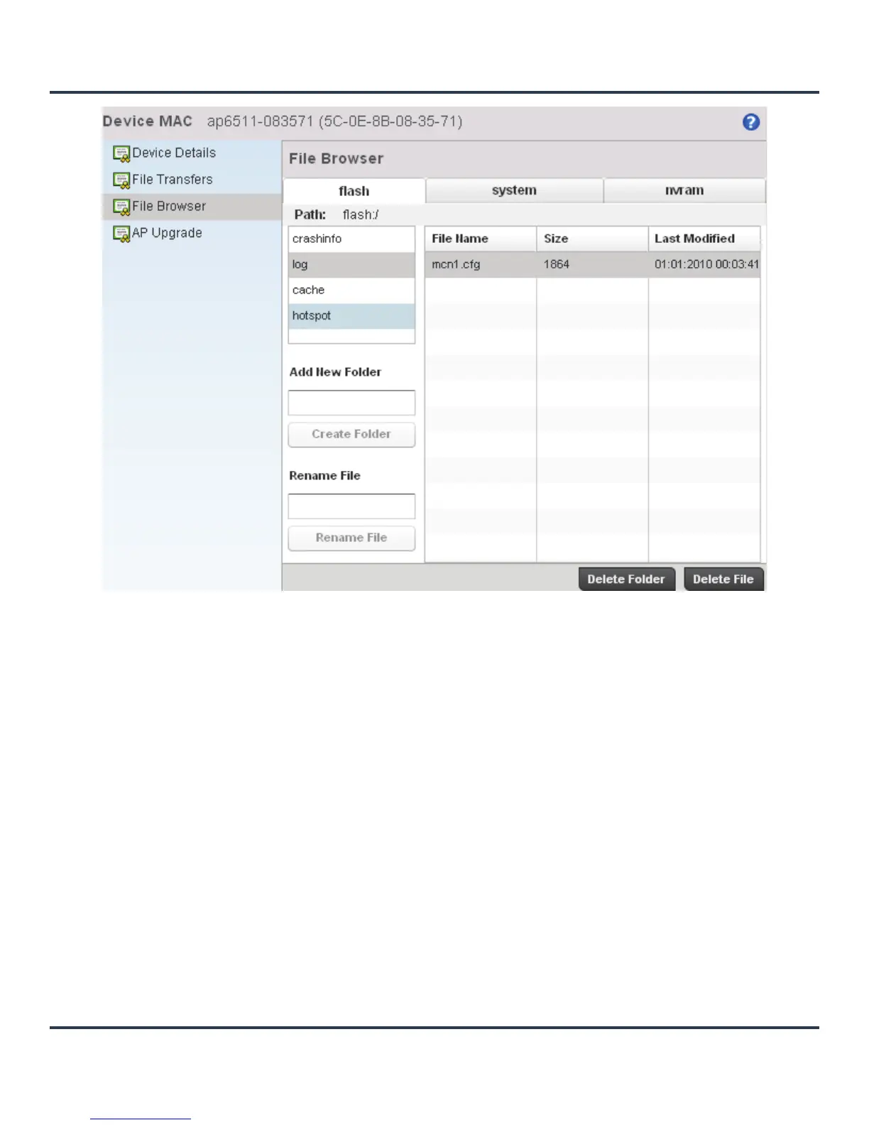 File Name Displays the name of the file residing on the selected flash, system, nvram