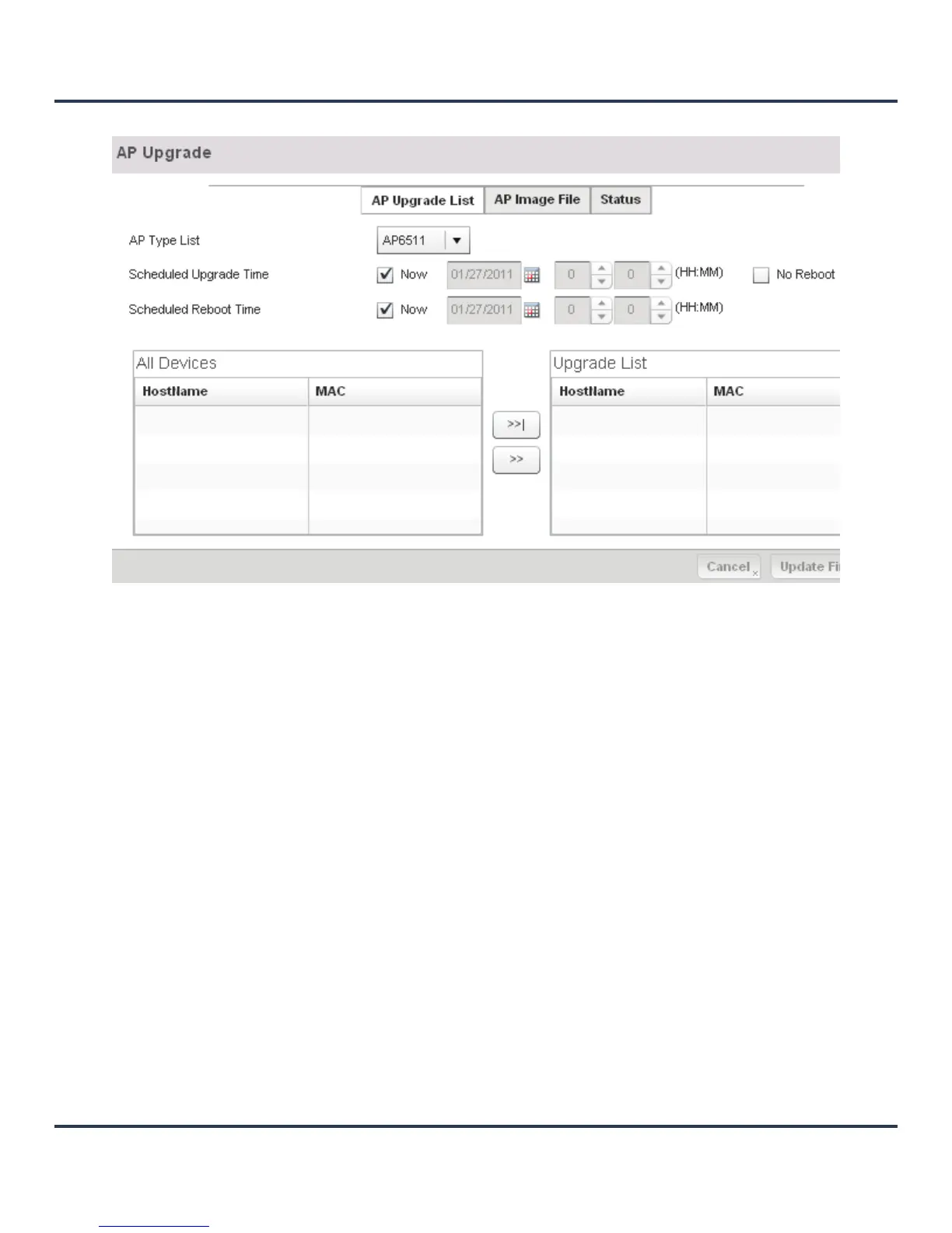 Figure 12-6 AP Upgrade screen - AP Upgrade List